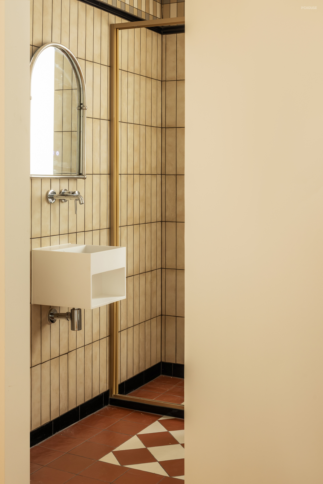 隐私性更高的淋浴间转移到主卫,客卫则获得空间来做方便日常双人同时洗漱的双台盆以及收纳。