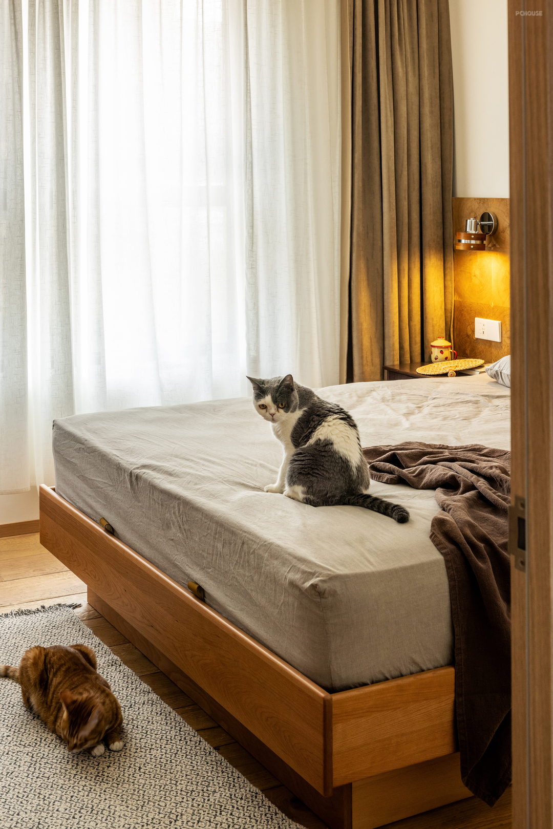 前言: 这个项目是小两口的婚房,还有两只猫猫,两个人都喜欢偏自然感的,加上都需要长期的家庭办公,并且有很多很多的书,所以我们是设计了这个自由、自然和功能性的家。