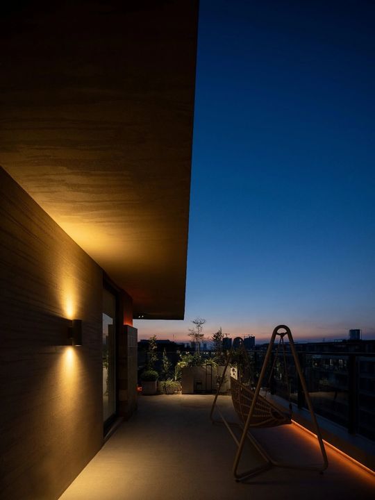 楼梯作为联通整个家的“桥梁”,流畅的线条旋转错落,凸显空间场景的转折,黑色的钢板+超白玻璃扶手,延展空间视觉,上下之间宛若向云端,成为表达创意和赋予空间趣味性的媒介。暗藏其中的暖光灯带与分散的筒灯互补充,当灯亮起的那一刻,温暖舒适的氛围散漫到整个空间。