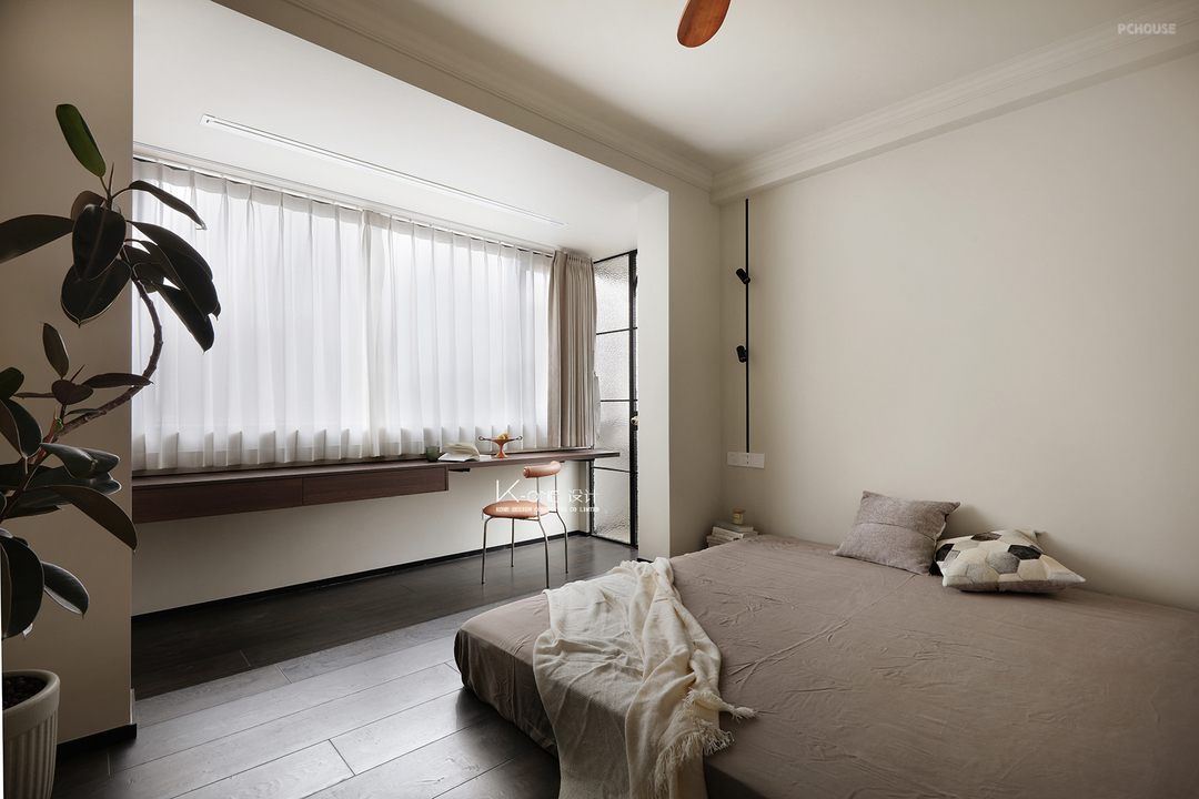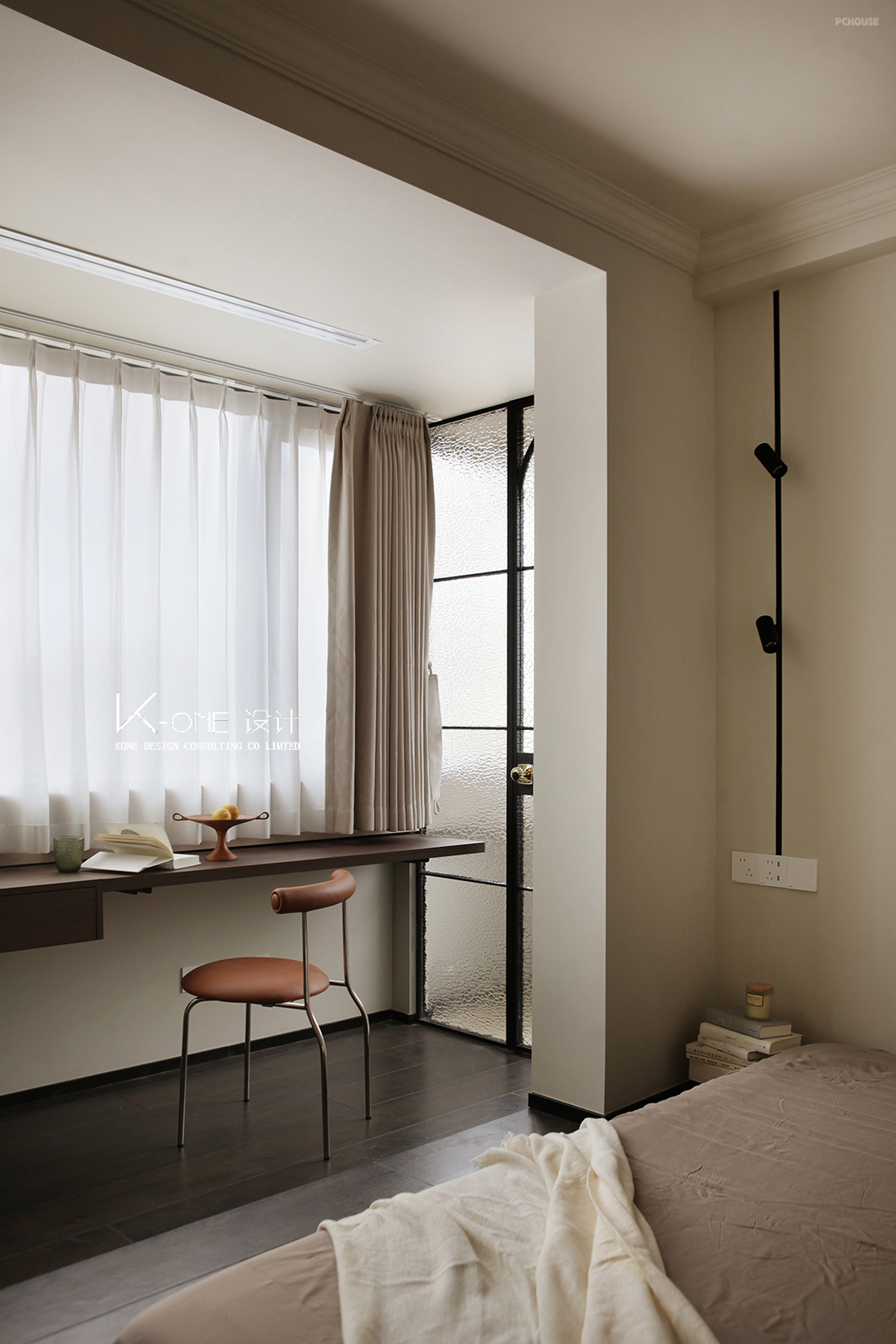 简约而舒适的卧室,展现了现代生活的优雅与宁静。宽敞的窗户让自然光源源不断地洒入,柔和的窗帘增添了一丝温暖。精致的书桌与椅子,完美契合了空间的设计,既是工作区也是思考的角落。旁边的绿植为房间注入了生机,带来了大自然的气息。优雅的色调和简约的线条让每一个细节都散发着恬淡的美感。在这里,无论是放松身心,还是静享阅读时光,都是一种无与伦比的享受。