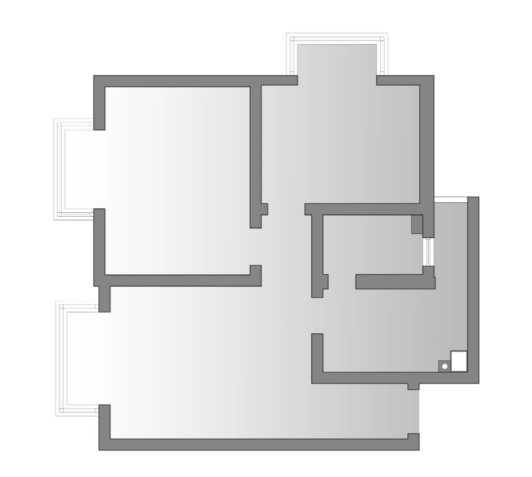 以上为原始户型图,整体看起来是一个比较规整的套二,但原户型卫生间需要从厨房进入,这点设计也是着实让人摸不着头脑……
