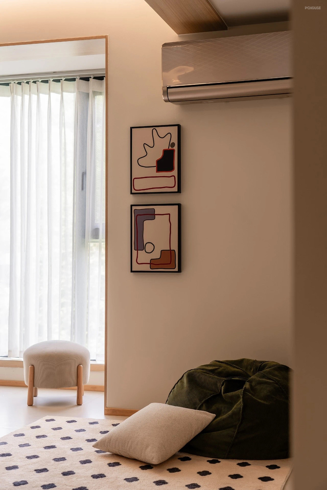 刚开始和小朋友打交道的时候还比较腼腆,后来见的次数多了,更放得开了,才发现她原来是个活泼好动的小孩儿。所以在设计时,我们会特别考虑为她提供足够的活动空间;同时为了营造宅家良好的学习氛围,我们弱化电视机的存在感,增加图书墙的设计,让书籍成为房屋焦点。接下来就看看Tokoi是如何呈现的吧~