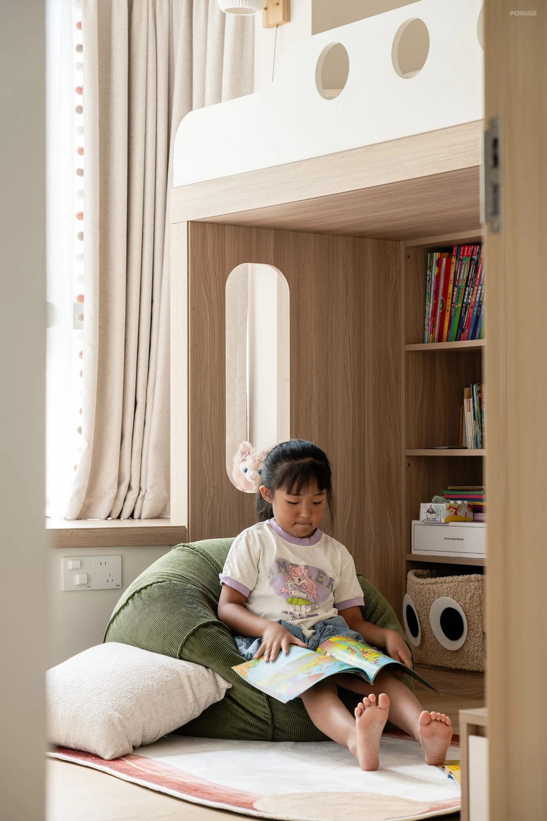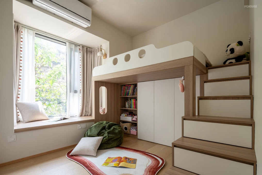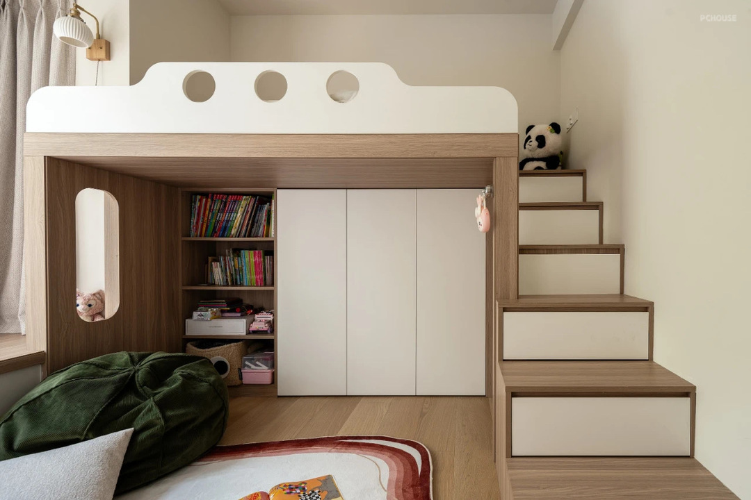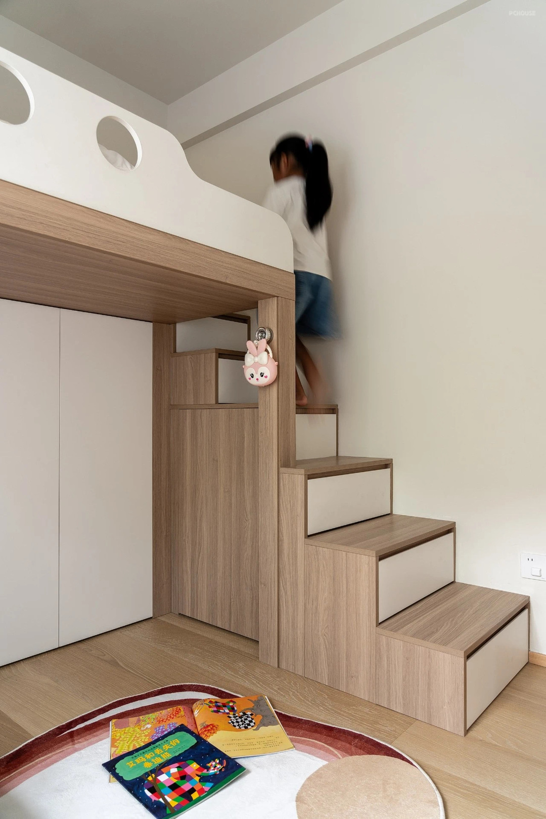 整个下方空间可以灵活打造为小朋友喜欢的任何空间,阅读、玩乐、休息均可满足。