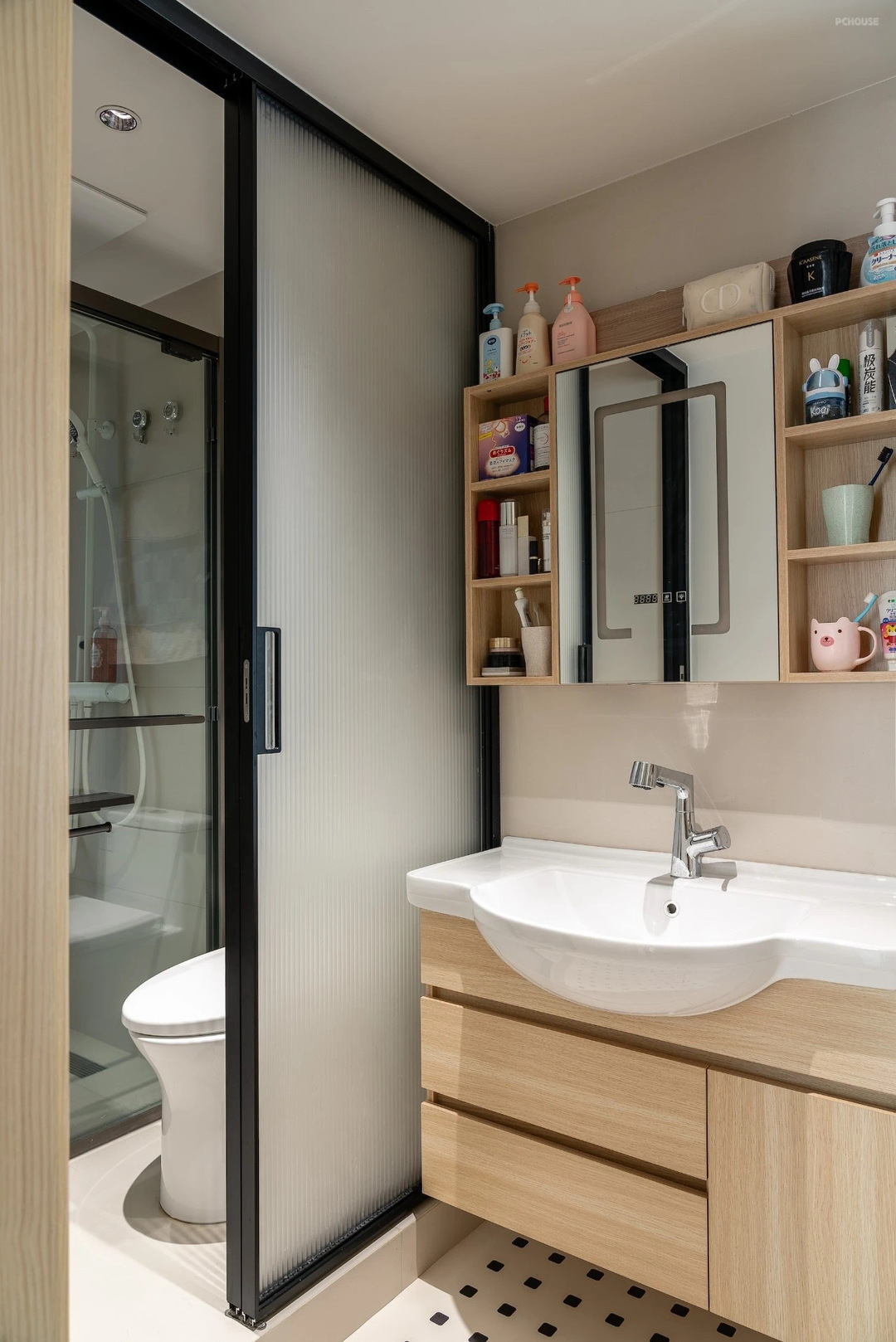 2️⃣ 修改卫生间门洞位置,将干区外移,做好洗手区、马桶区、淋浴区三分离,使得各个空间的进出动线更为合理;
