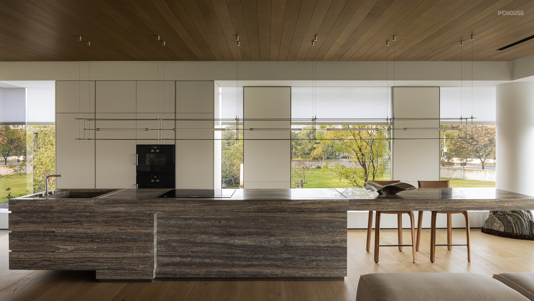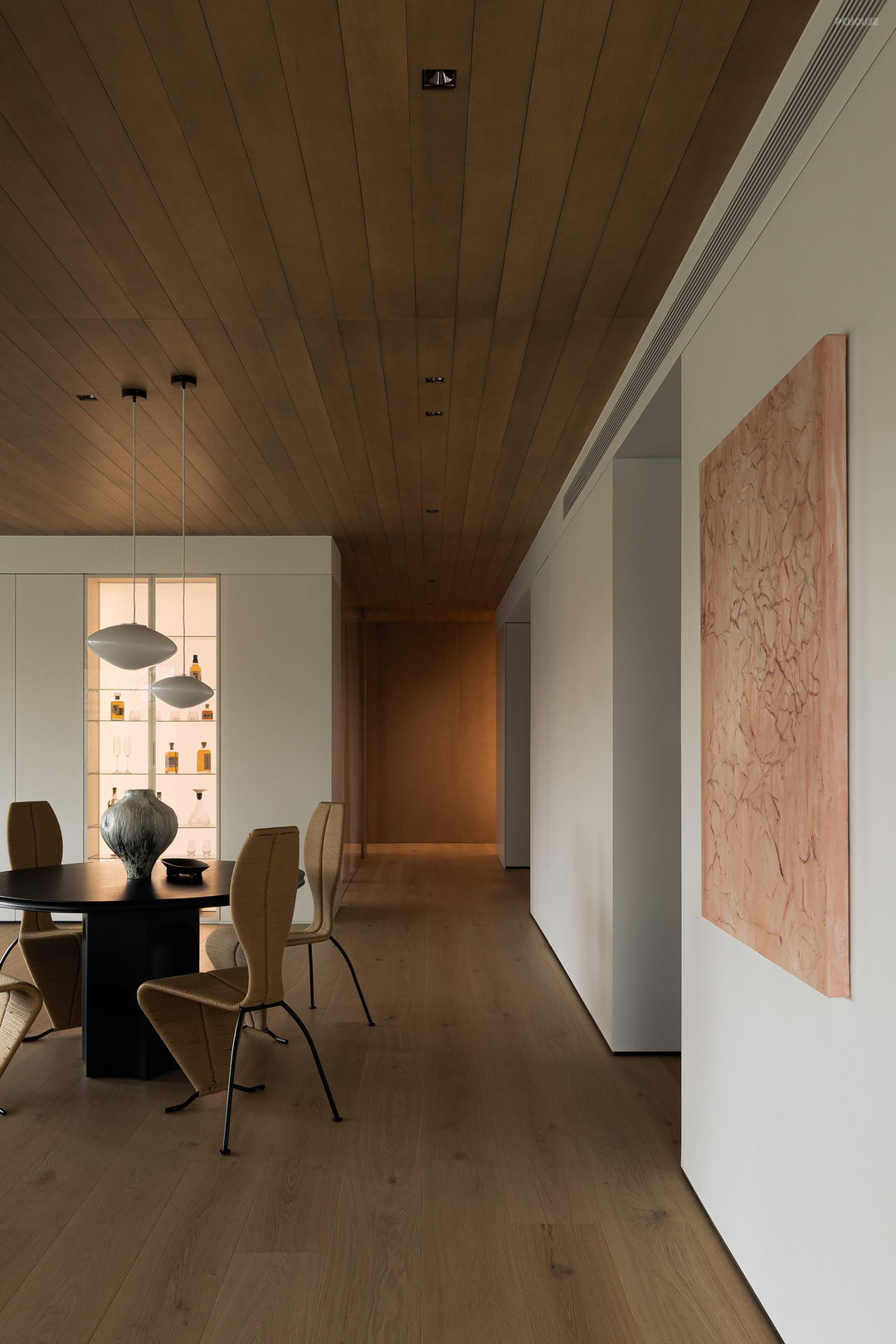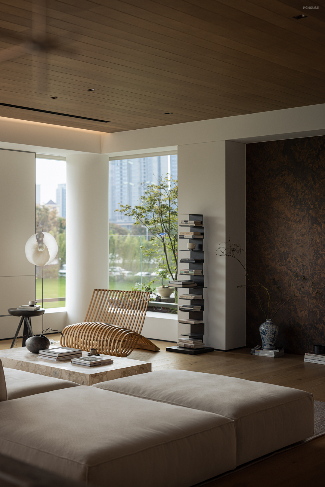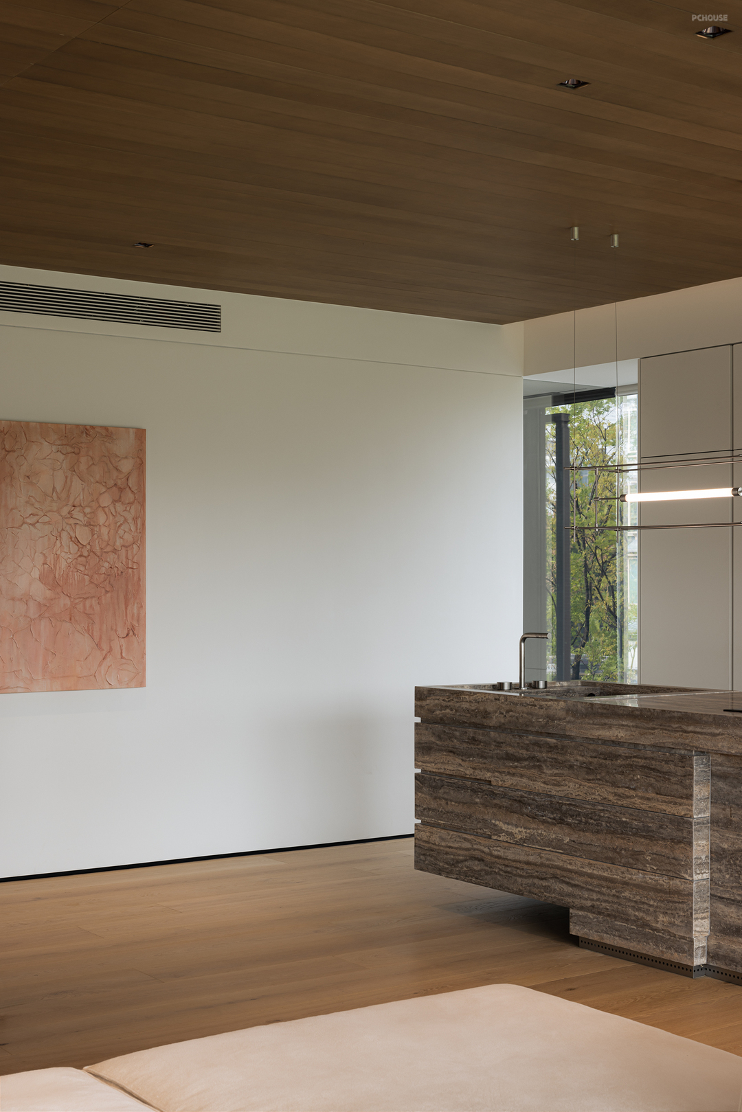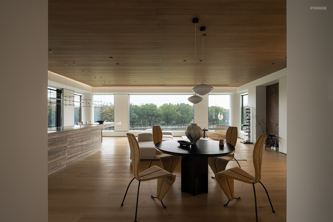 材质的润泽,细部的雕琢,空间成为情感和记忆共鸣的容器,向外延展的天地辽阔,向内克制的围合归意。空间质感的构建里,居者的观念和生活方式,已然在现代空间映生。