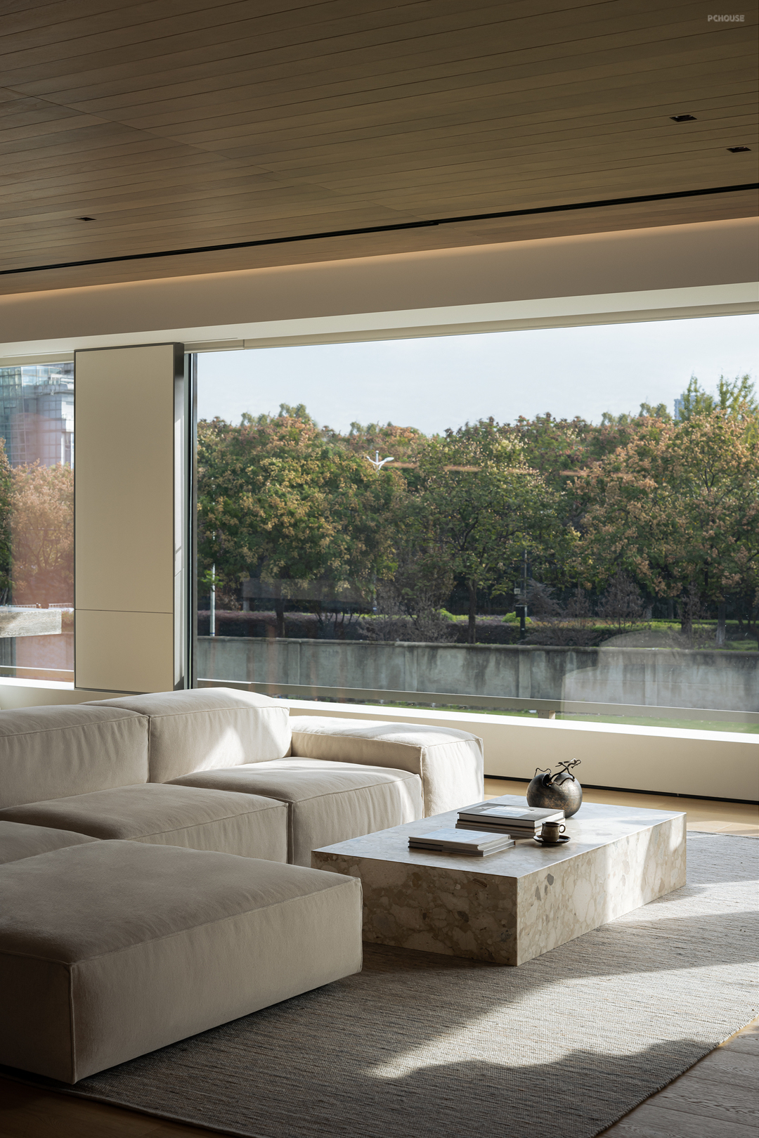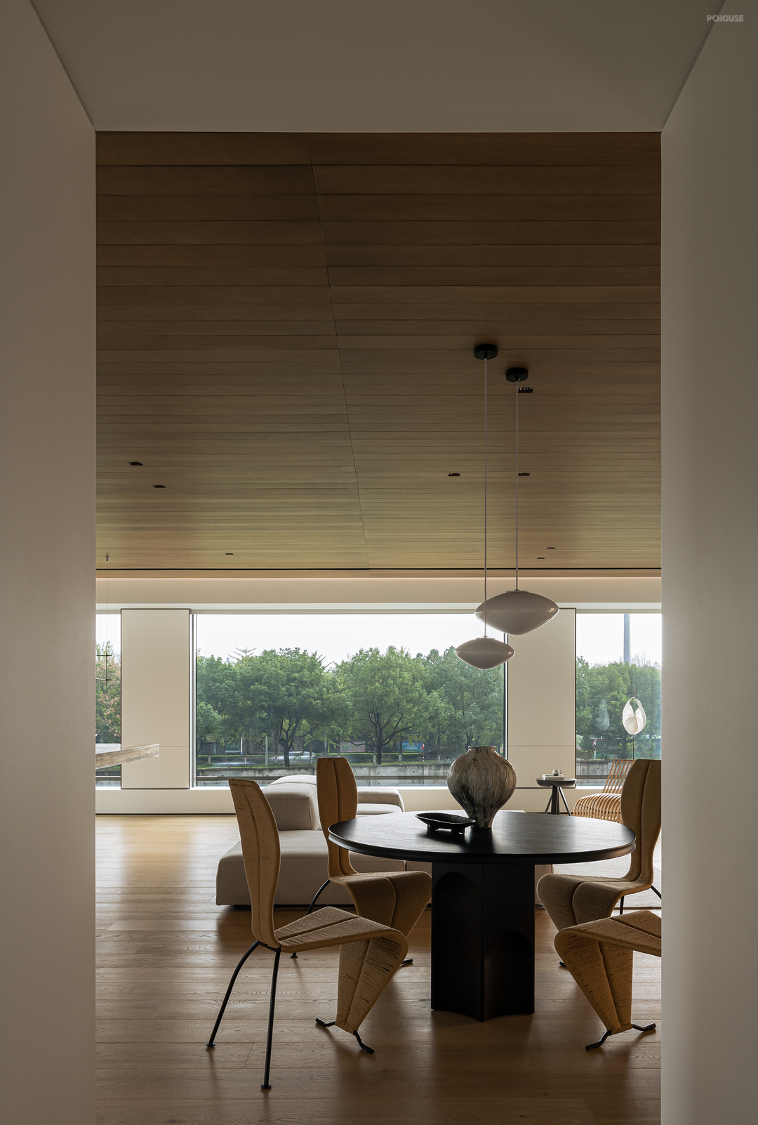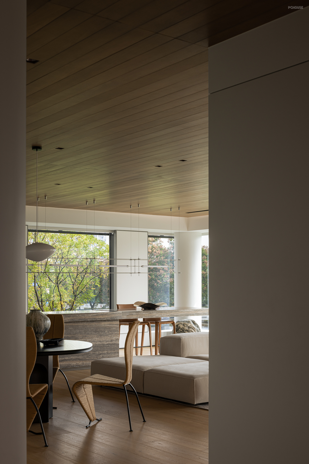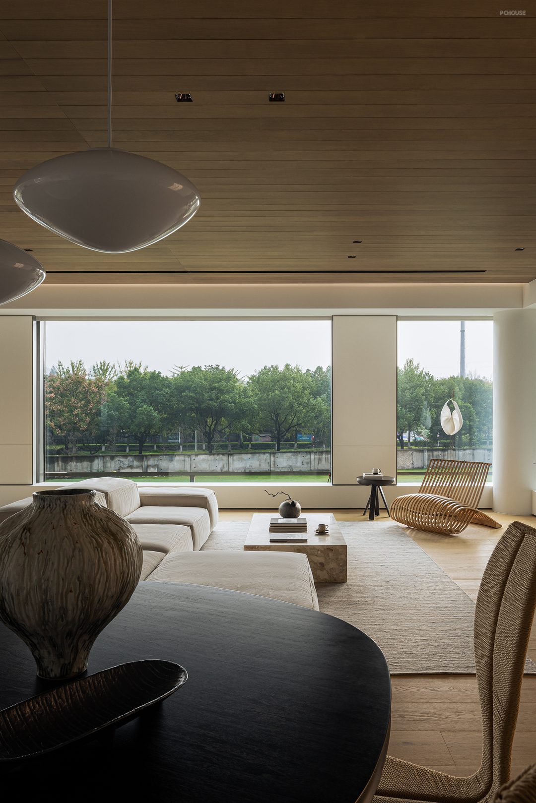 材质的润泽,细部的雕琢,空间成为情感和记忆共鸣的容器,向外延展的天地辽阔,向内克制的围合归意。空间质感的构建里,居者的观念和生活方式,已然在现代空间映生。