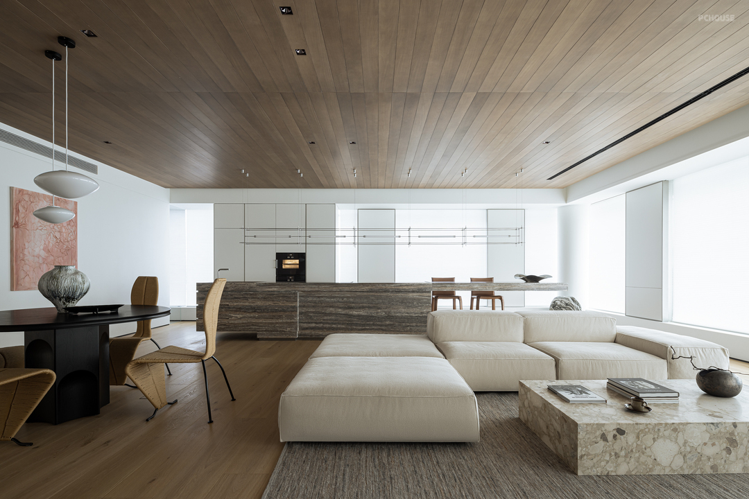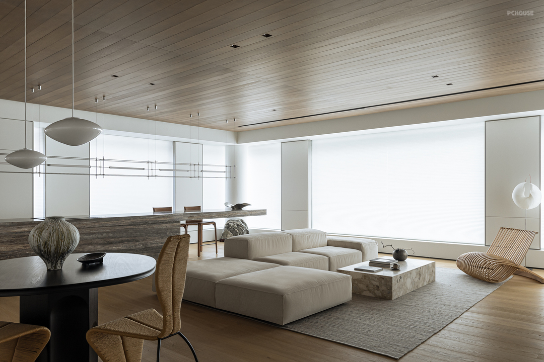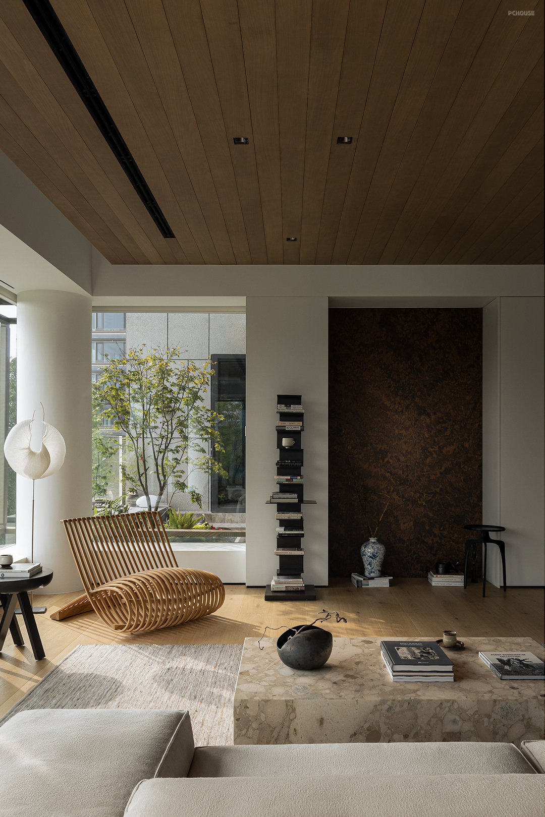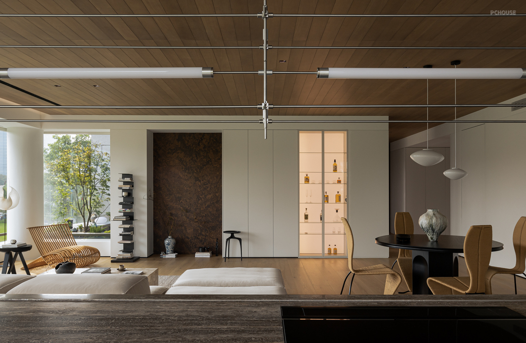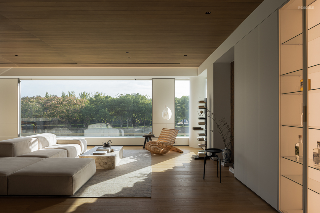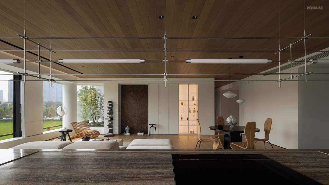 材质的润泽,细部的雕琢,空间成为情感和记忆共鸣的容器,向外延展的天地辽阔,向内克制的围合归意。空间质感的构建里,居者的观念和生活方式,已然在现代空间映生。