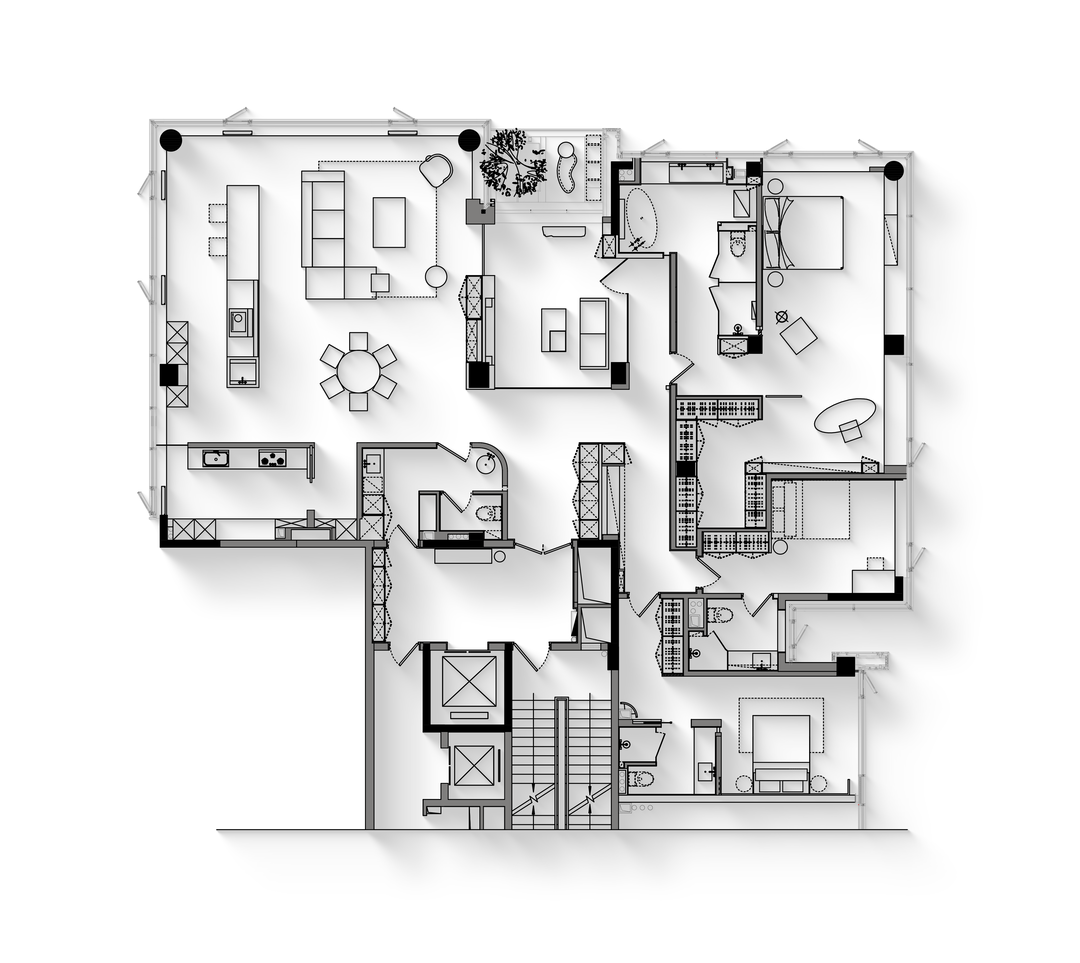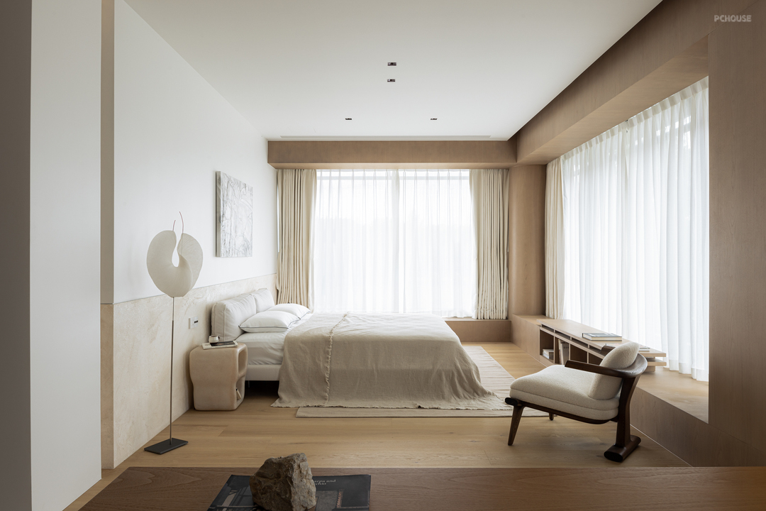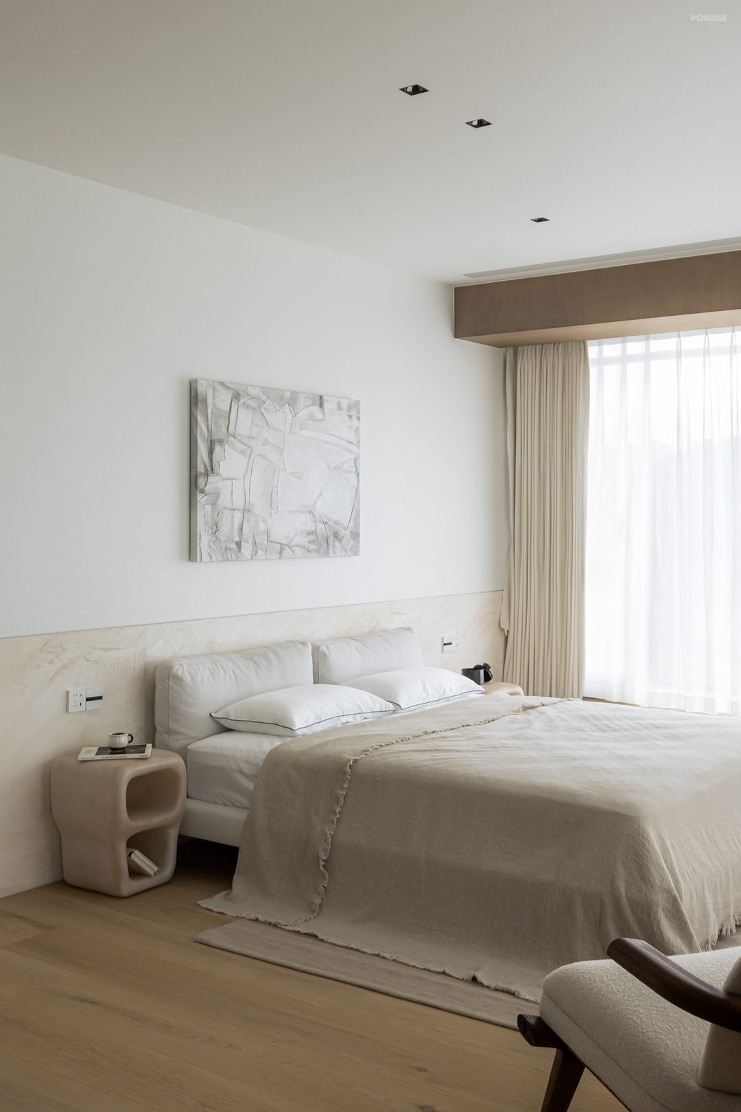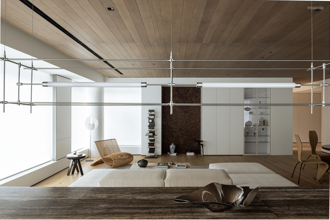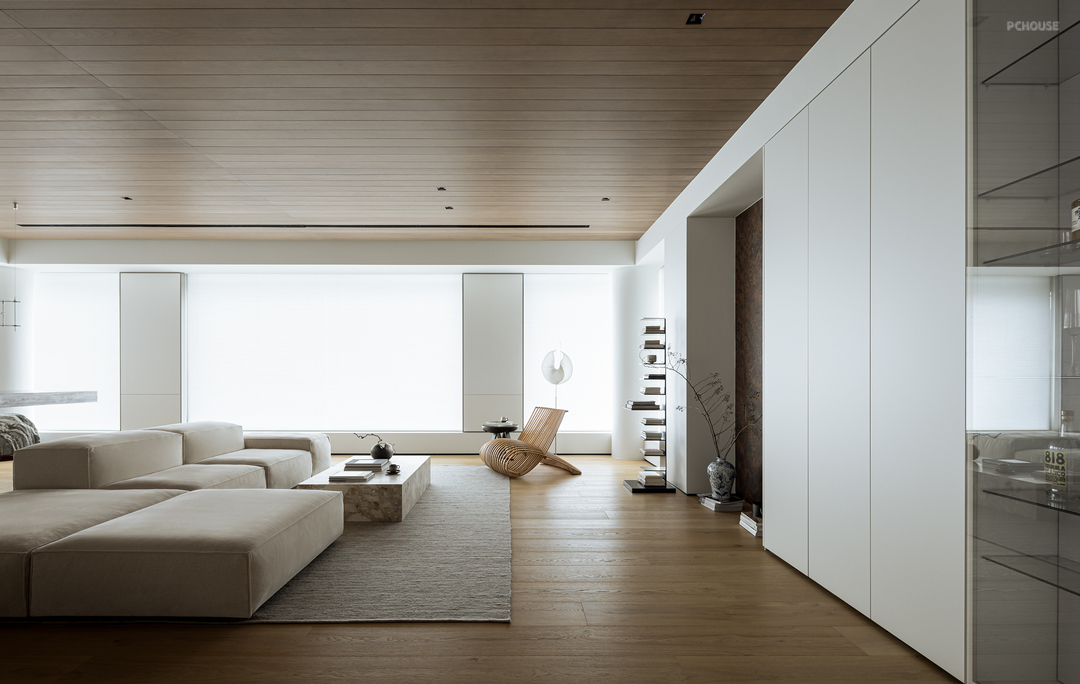 材质的润泽,细部的雕琢,空间成为情感和记忆共鸣的容器,向外延展的天地辽阔,向内克制的围合归意。空间质感的构建里,居者的观念和生活方式,已然在现代空间映生。
