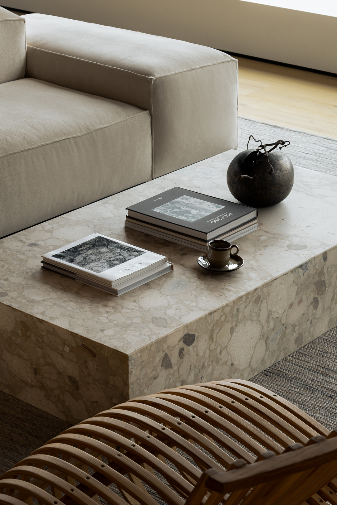 以树瘤木错综复杂的漩涡状纹理作为点睛,恰到好处的板块,成为空间里独特的美学表达。在仍然克制与极少主义的前提下去追求部分时代的经典隽永,在当代与复古的错痕中点染日常,让生活触手生温。
