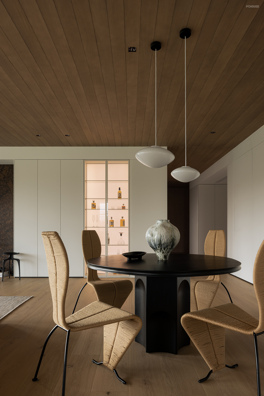 木的气质再次融入空间,堆褶在细节里的生活况味,深藏着精神与情感的丰富脉络,如同岁月沉淀的从容厚重,充盈着那份自在舒适,悠游自若的气息。