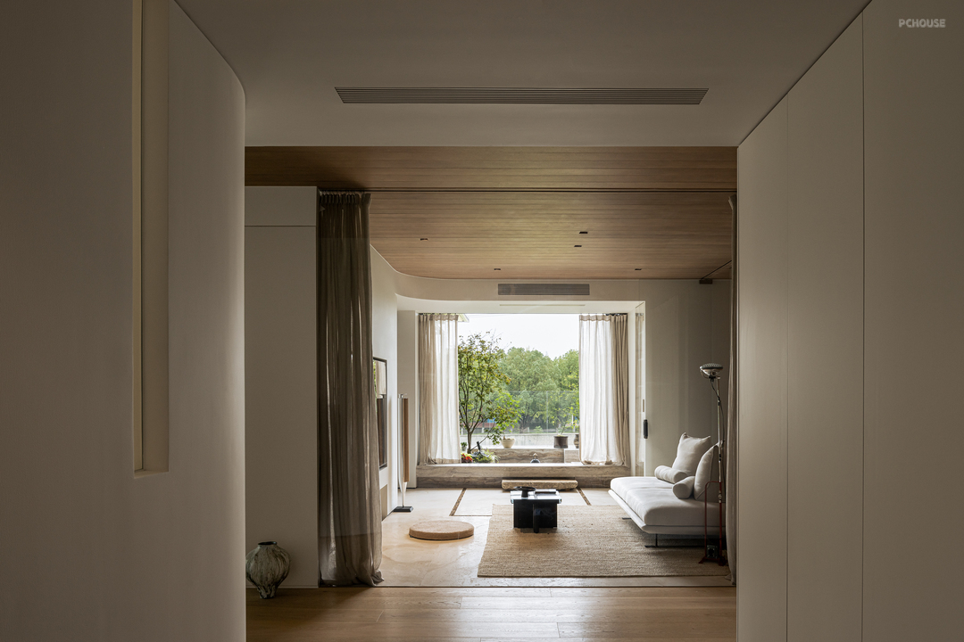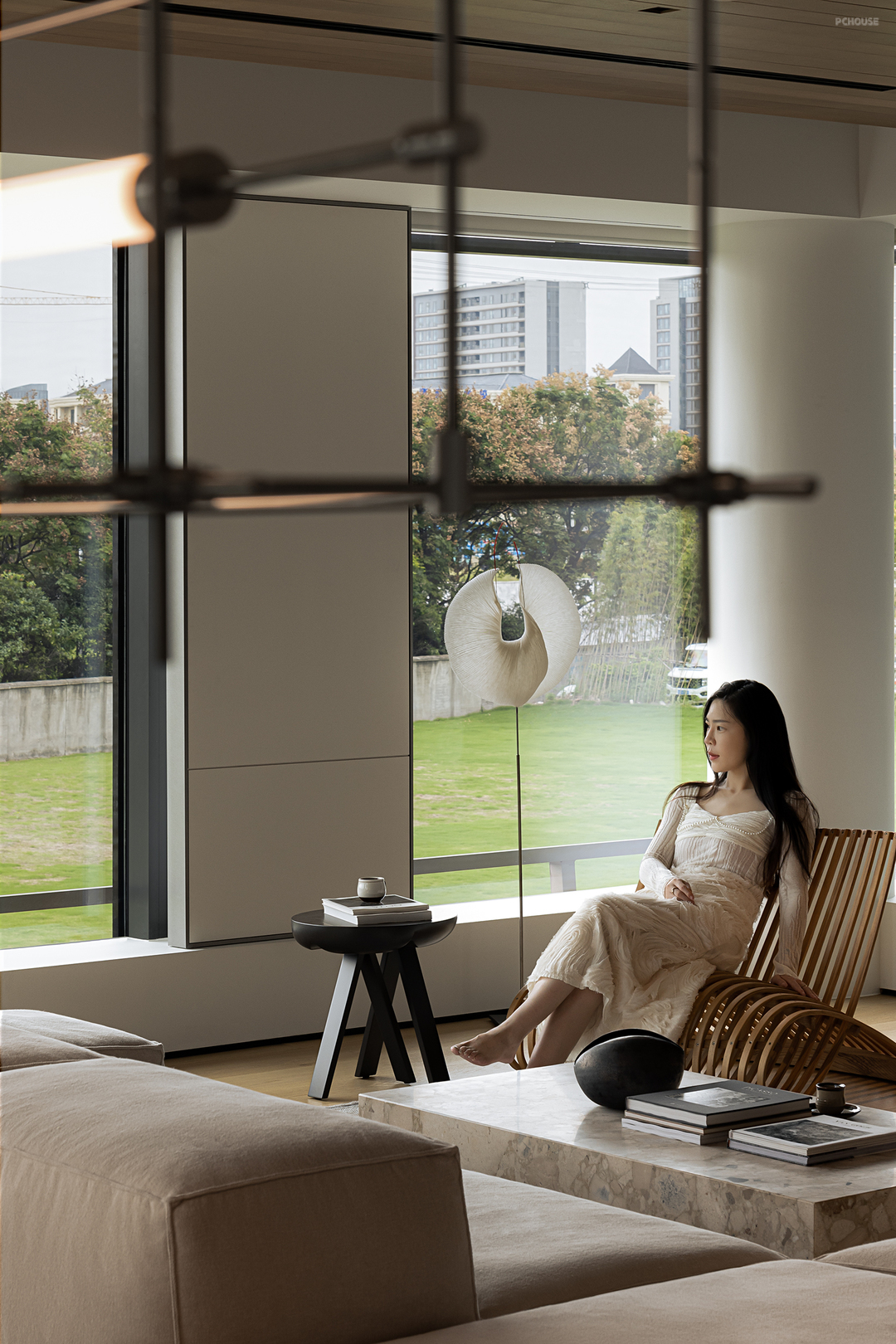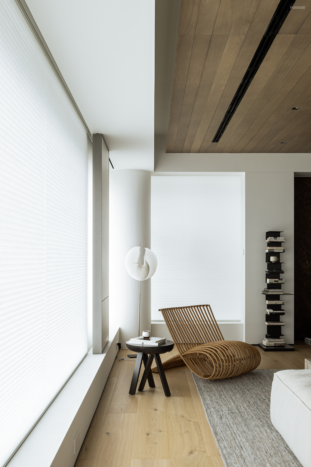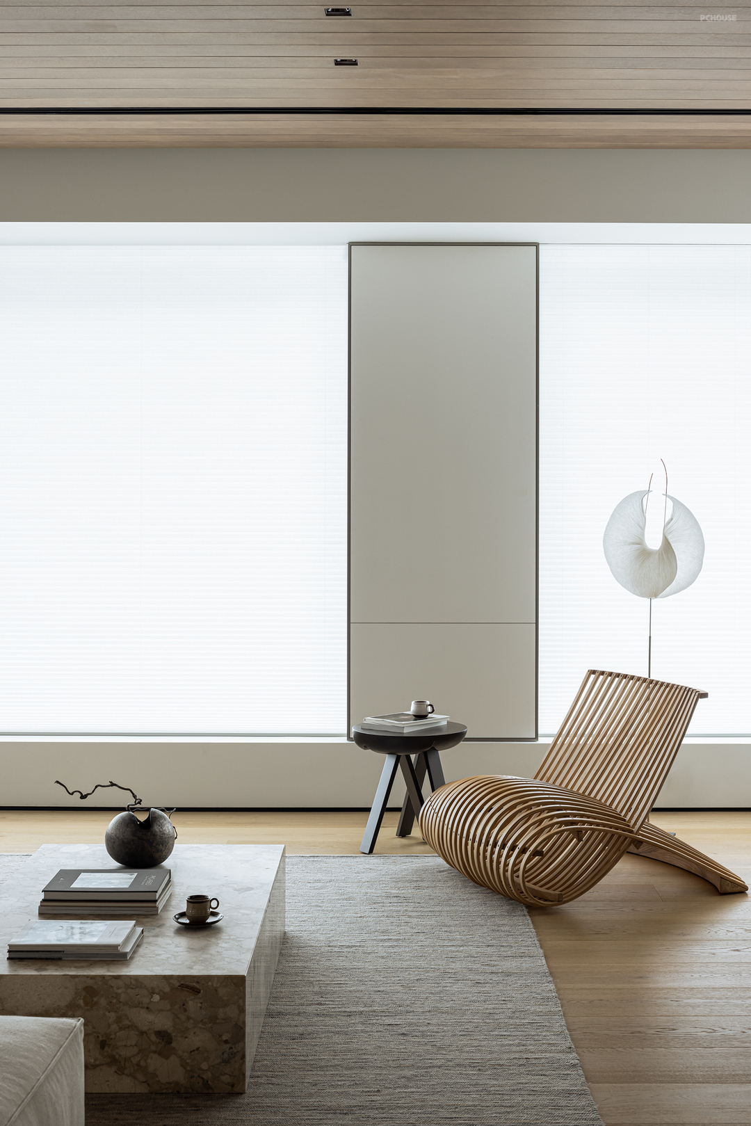 偌大的窗景在开合之间别具意趣。当四时风物揽进室内,绿意绵延的生命力似居于丛野,而合帘的侘寂与静谧之感又在留白与克制间,沉浸于平和与宁思。