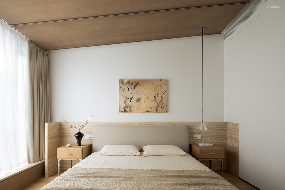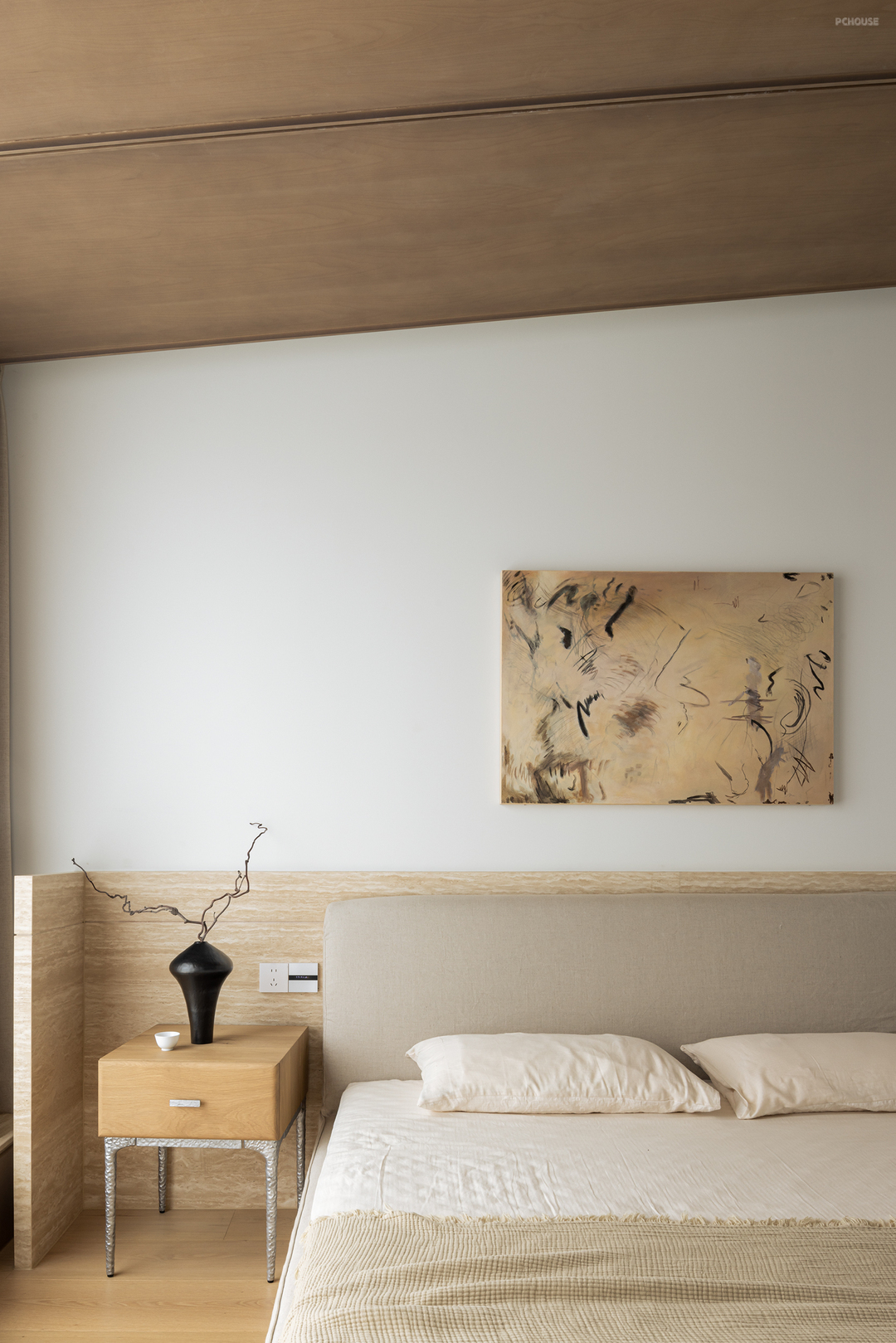 简淡雅意,暖光铺韵,隐匿着的宁静祥和由画及室。在看似重复的元素间加入亮点,以现代与含蓄的东方韵律抒写空间情调,烘托出一个消弭了距离感的生活境域。