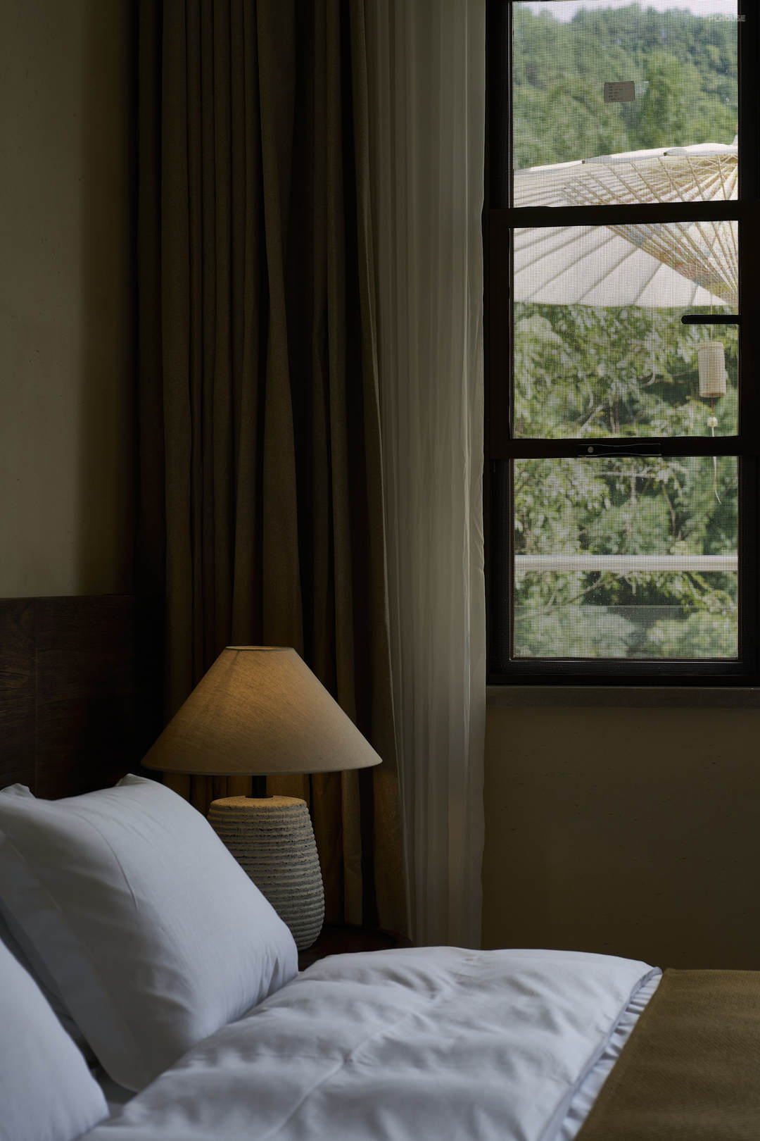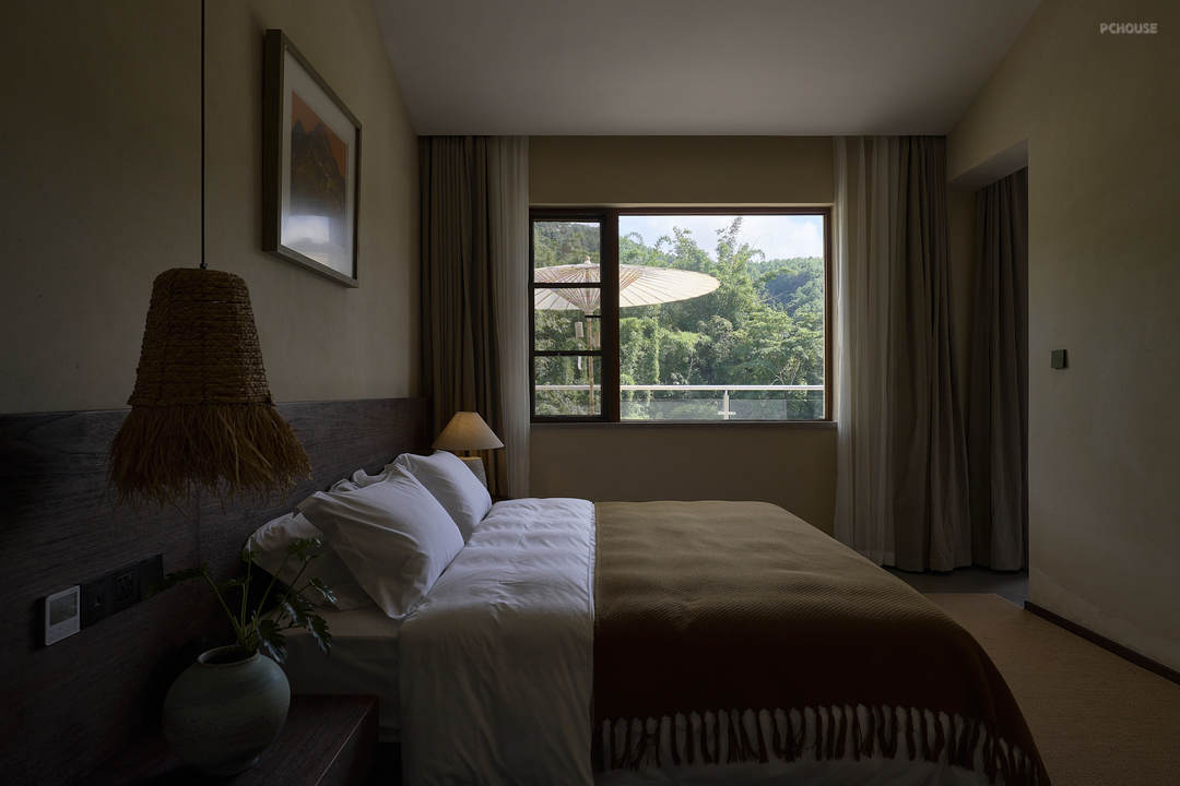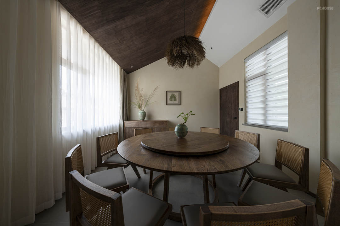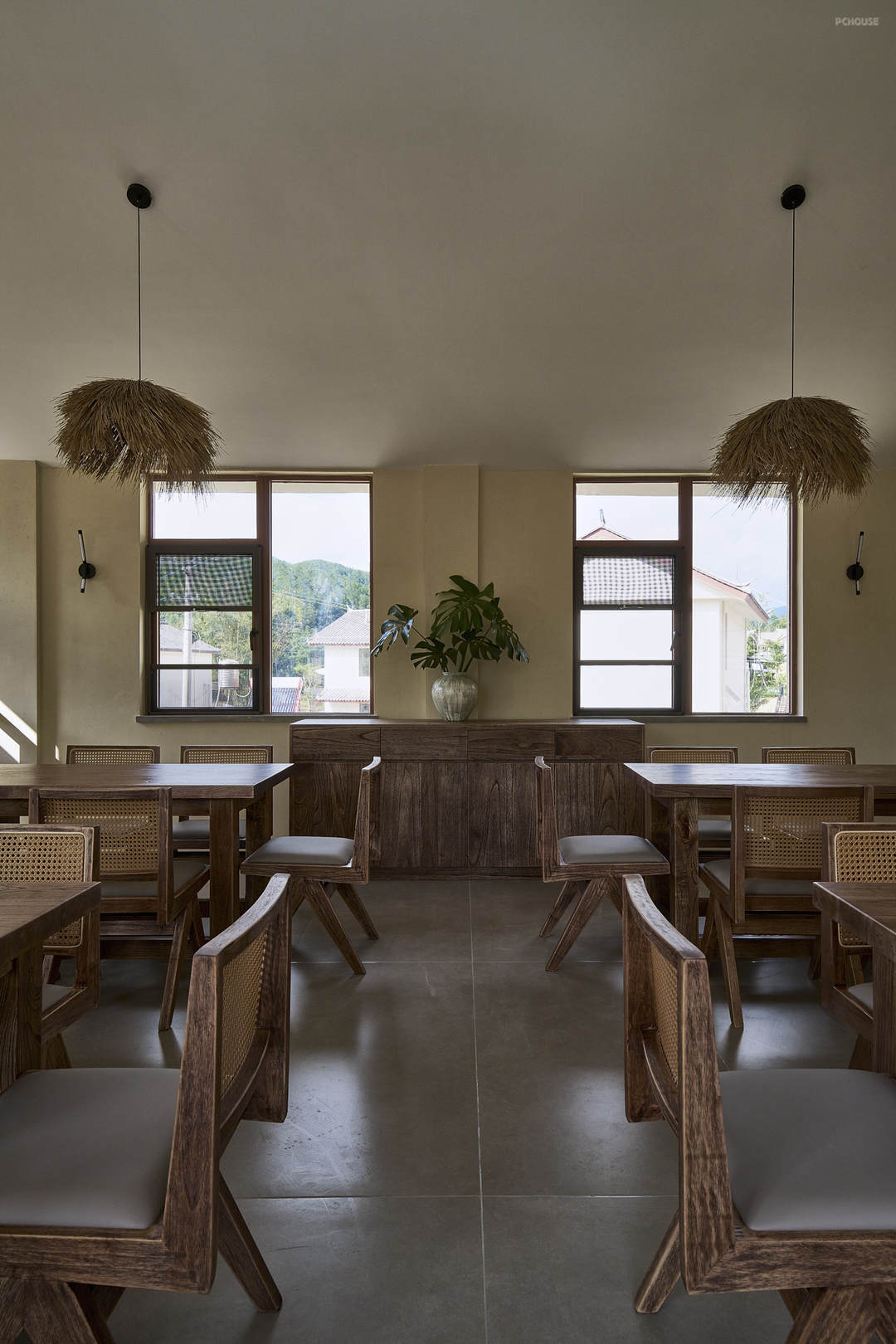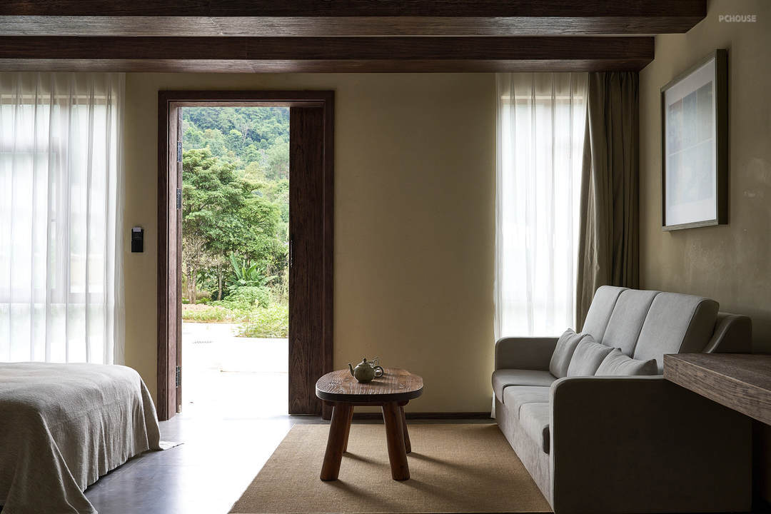 只与稻草漆墙香如旧,咖木沉淀的桌台定格了一辰辰光。材质是沉稳厚重的静木,遥自雨林幽深处,恰如日色冷青松。窗外恰是云销雨霁,一窗入景,不动似画,彩彻区明。