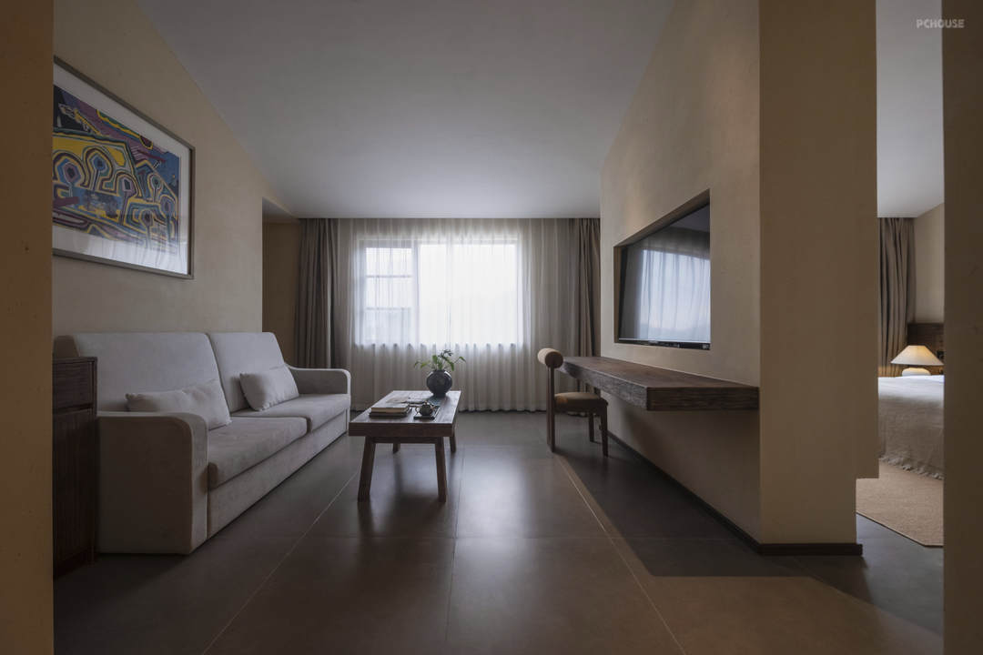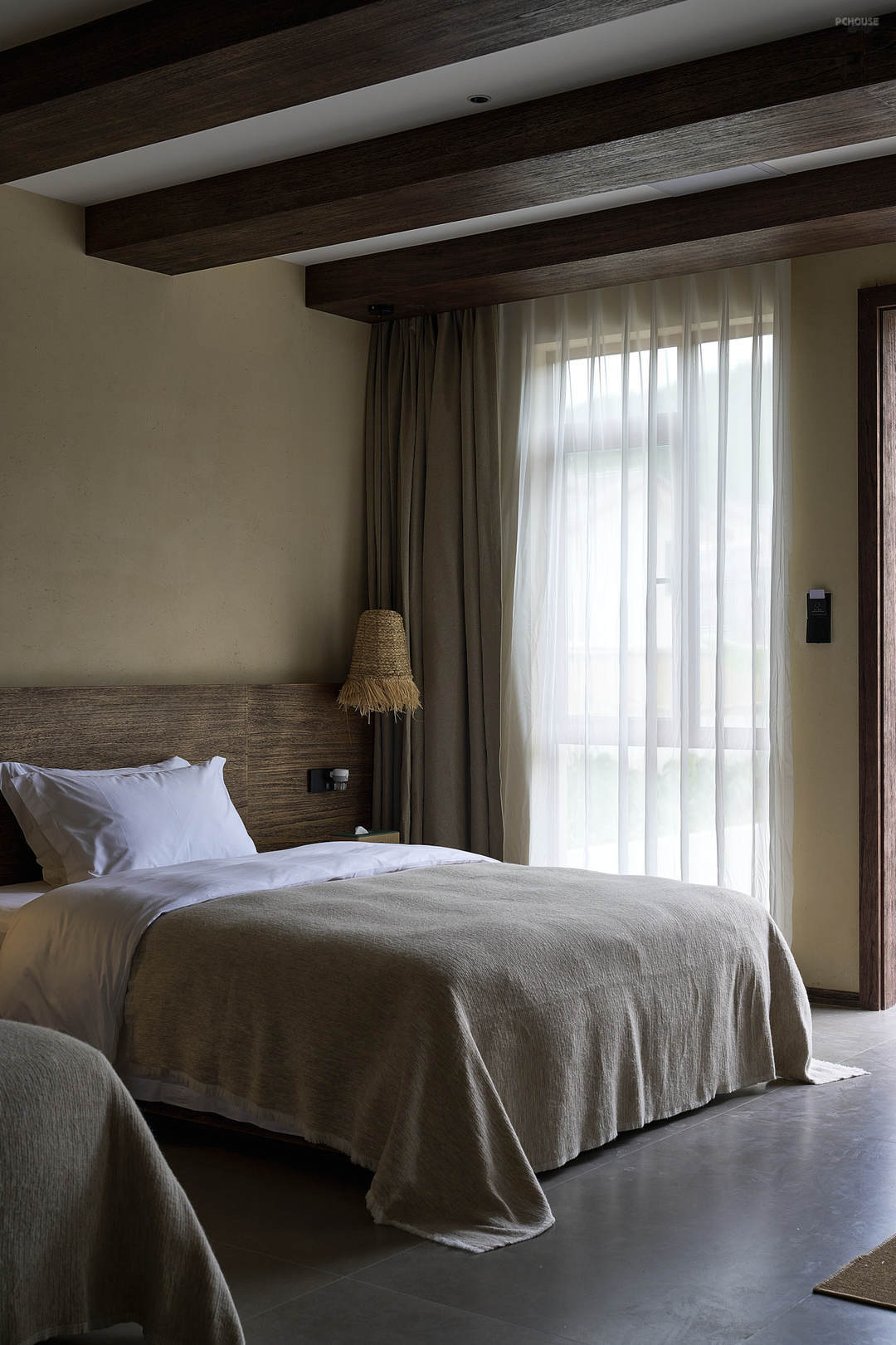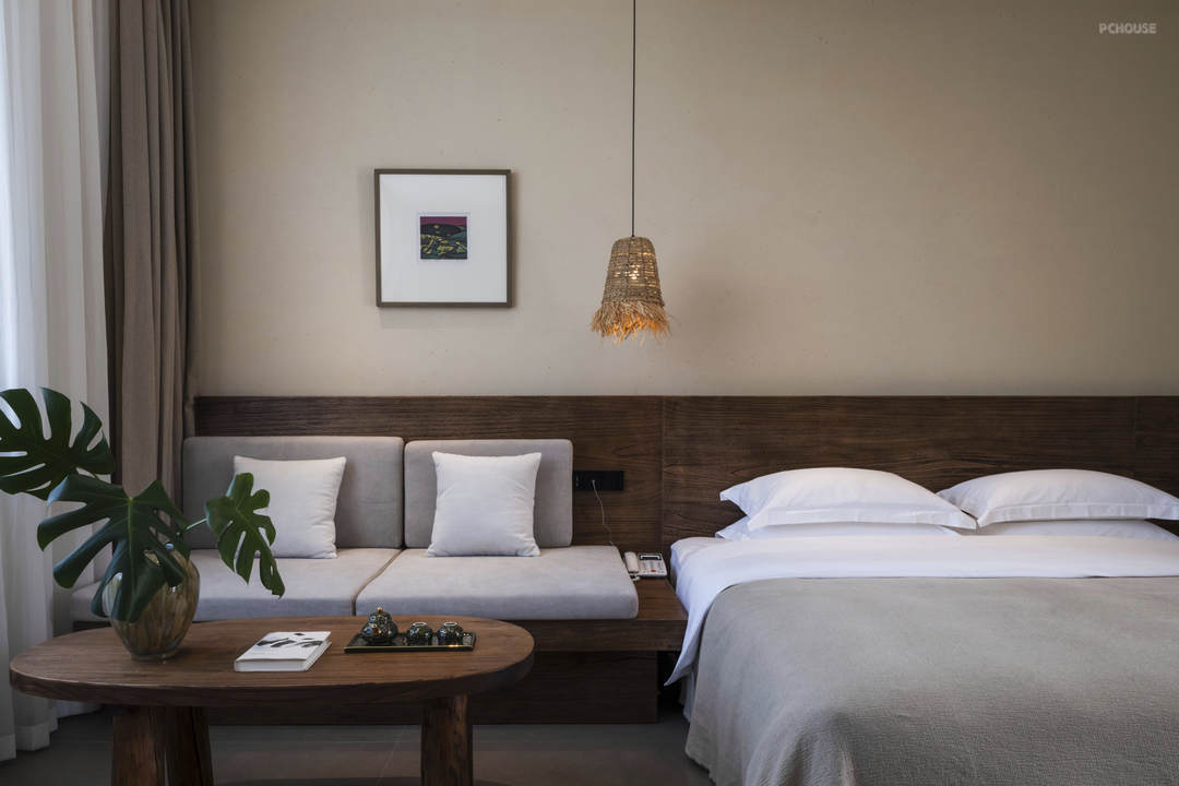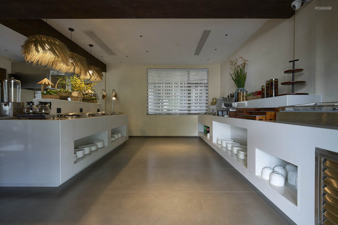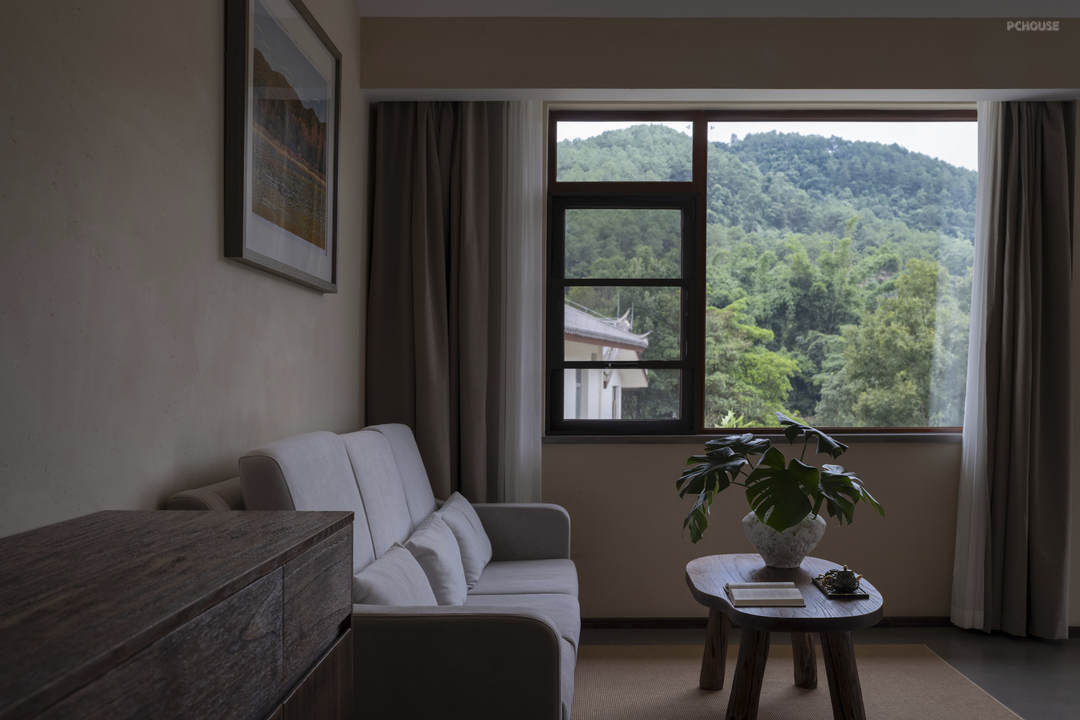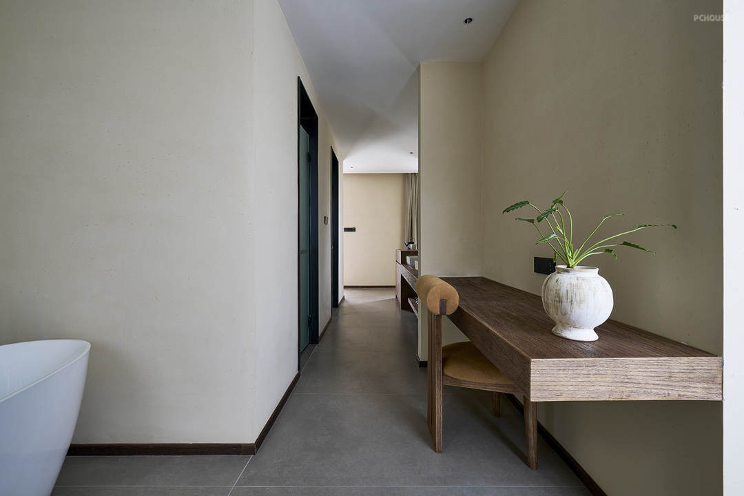 只与稻草漆墙香如旧,咖木沉淀的桌台定格了一辰辰光。材质是沉稳厚重的静木,遥自雨林幽深处,恰如日色冷青松。窗外恰是云销雨霁,一窗入景,不动似画,彩彻区明。