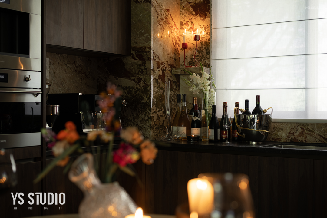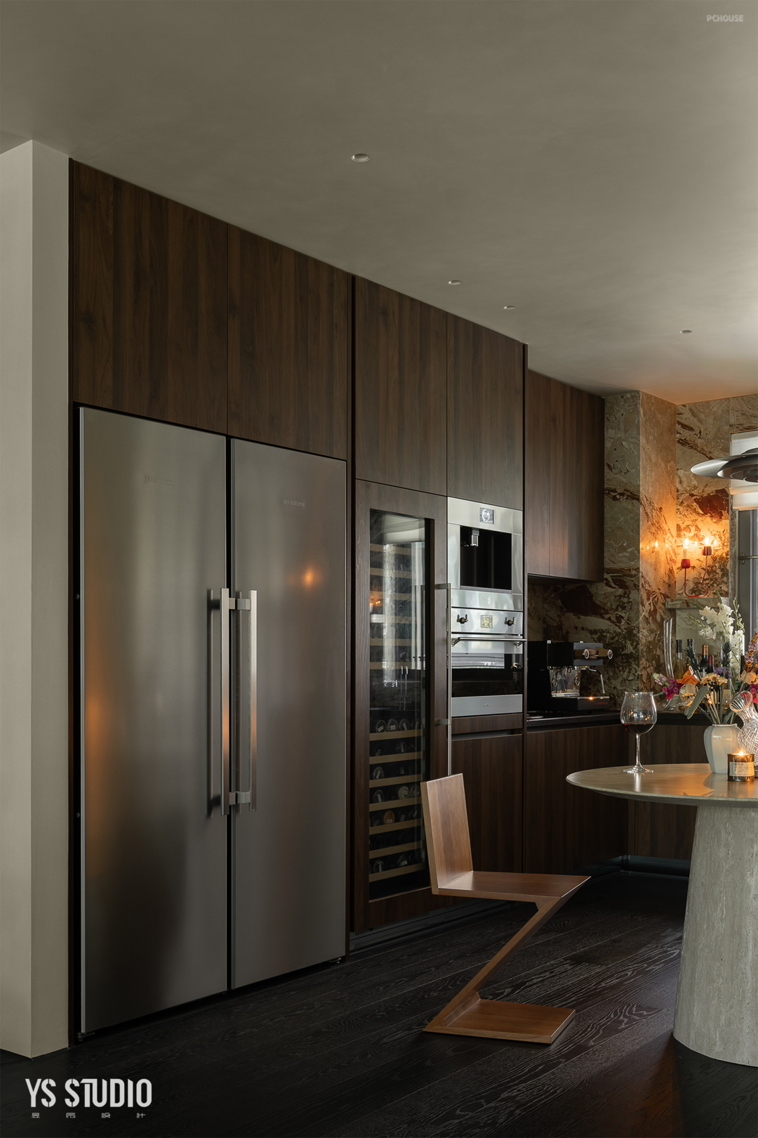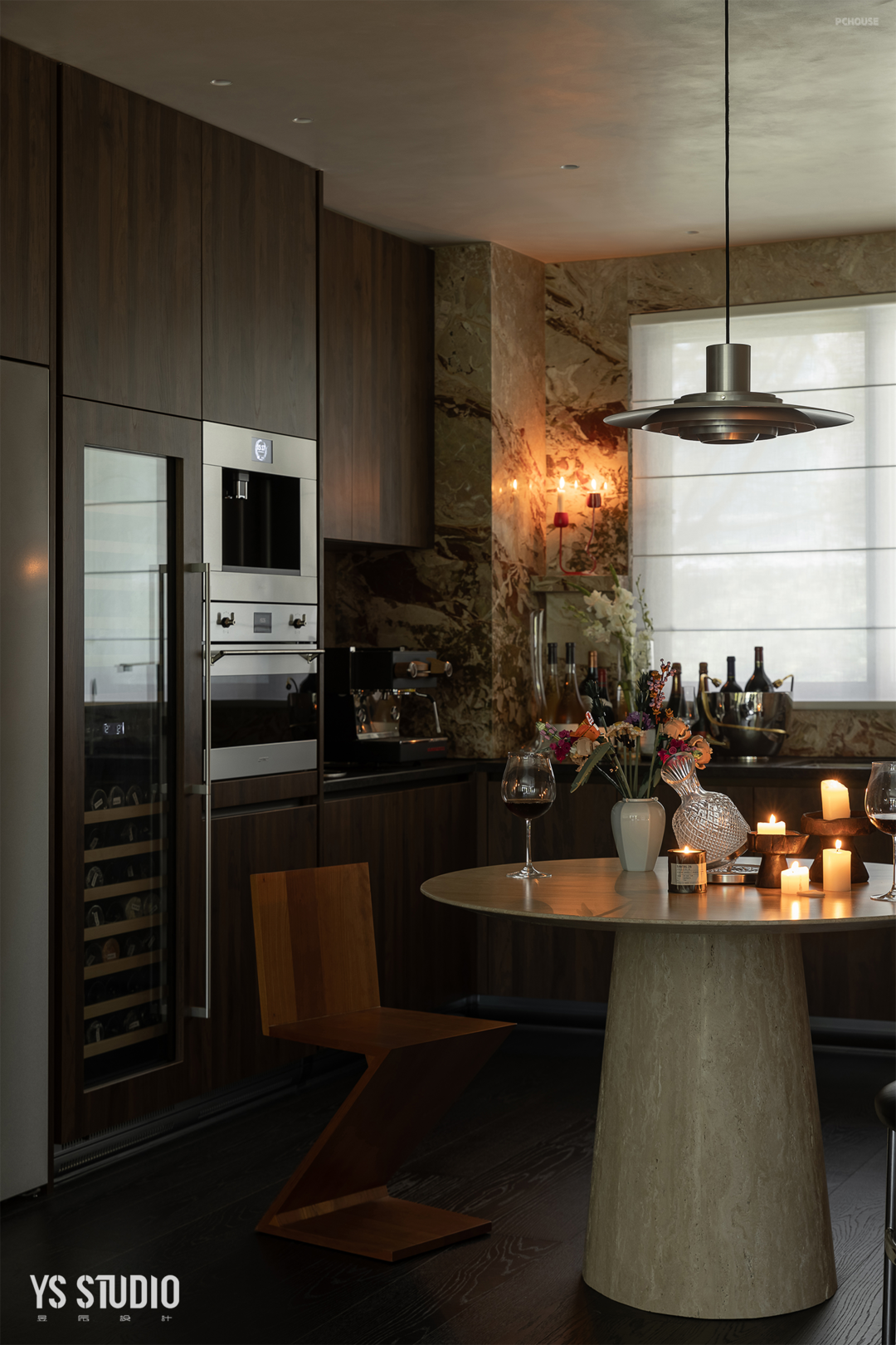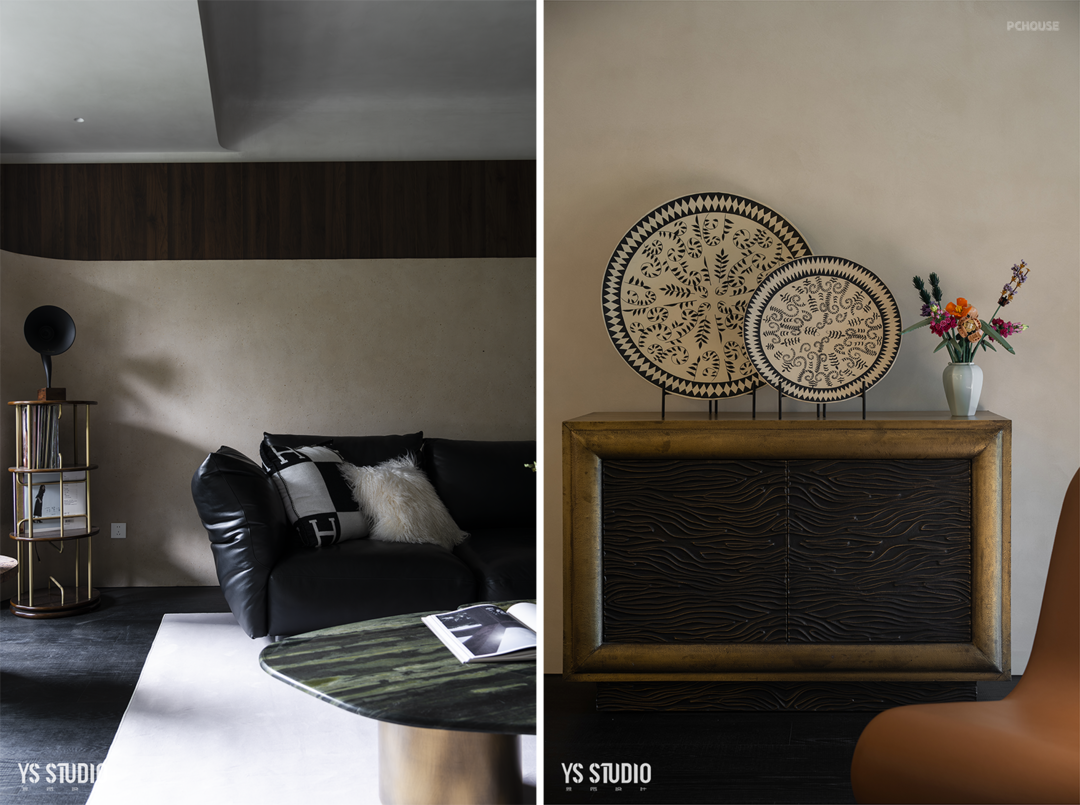 这套案子在年初的时候做了详细的设计预告,从最终的案例呈现来说,还原度很高。在保留高级的“折衷主义”的空间艺术之余,更体现了强烈的自由、包容度。 深色,将整个空间构造地如此摩登,具有质感,我们仍然想传达屋主对生活的热爱,屋主本身的特质,所以在后期很多软装摆件的选择上,是更为灵活,也是体现屋主生活状态的。