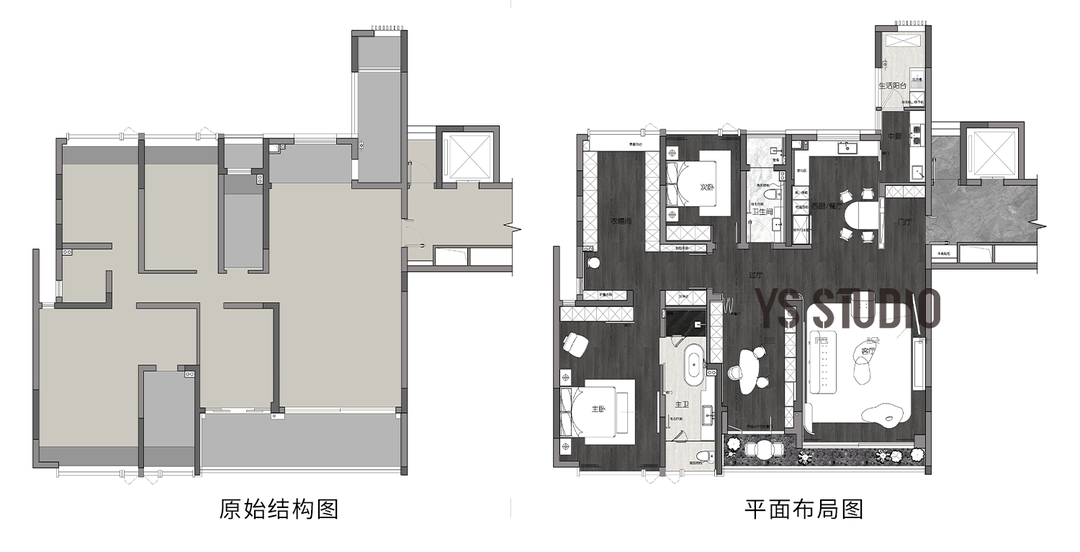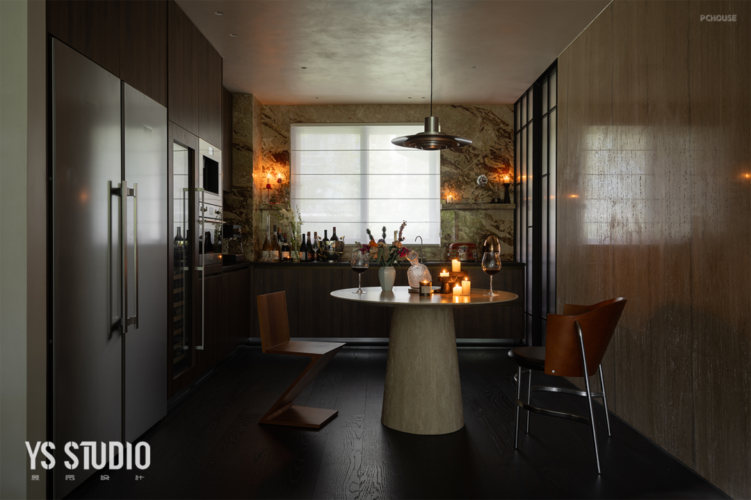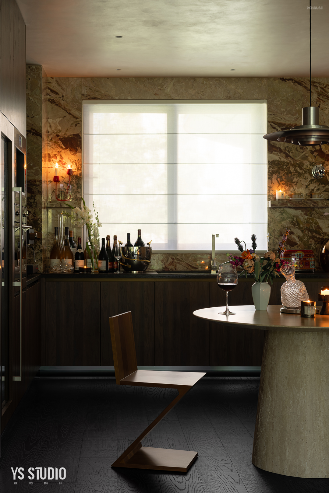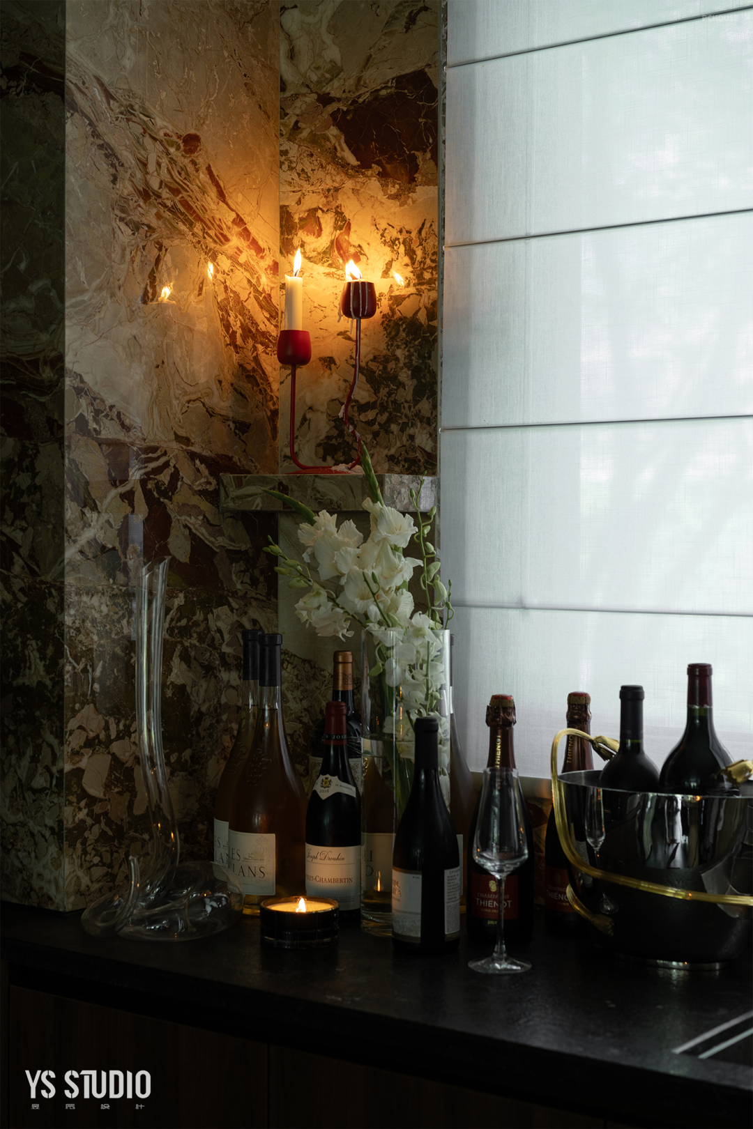 这套案子在年初的时候做了详细的设计预告,从最终的案例呈现来说,还原度很高。在保留高级的“折衷主义”的空间艺术之余,更体现了强烈的自由、包容度。 深色,将整个空间构造地如此摩登,具有质感,我们仍然想传达屋主对生活的热爱,屋主本身的特质,所以在后期很多软装摆件的选择上,是更为灵活,也是体现屋主生活状态的。