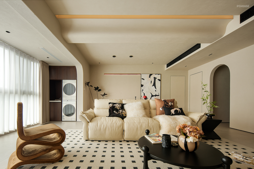 客厅超大的落地窗保留了充足的视域采光。客厅全面开放的格局,让客餐厅之间相互联动,在提升体验感的同时,也增强了整体的采光与通风,简洁流畅的动线规划,在布局之外,营造出使用的更多可能性。