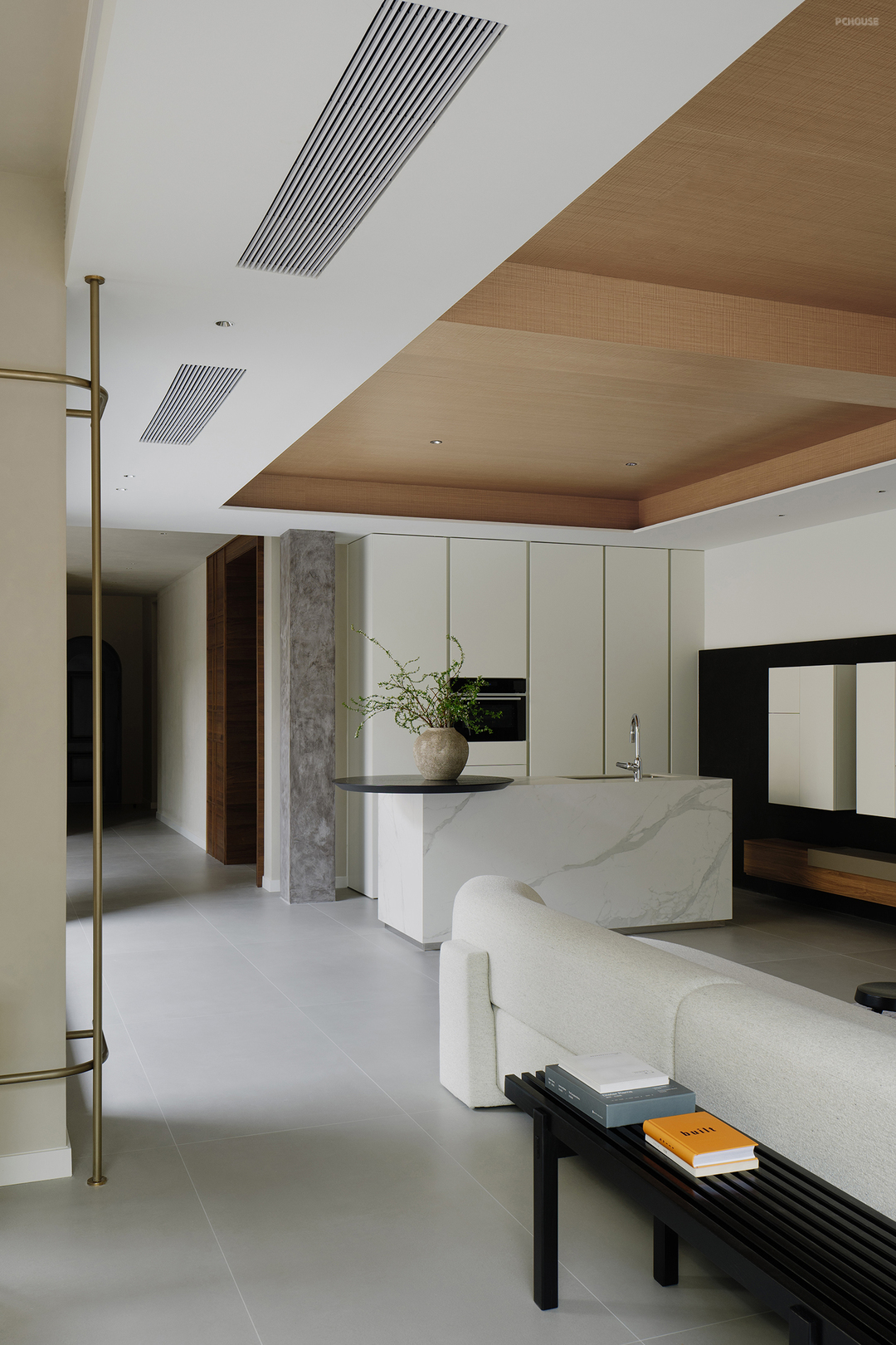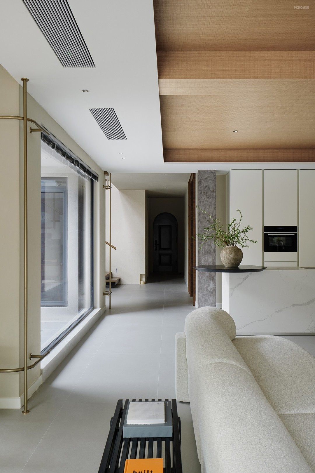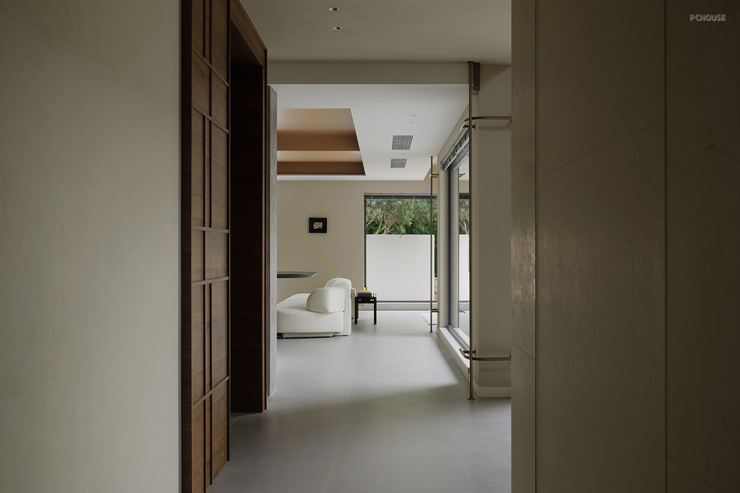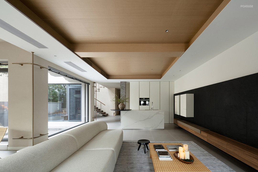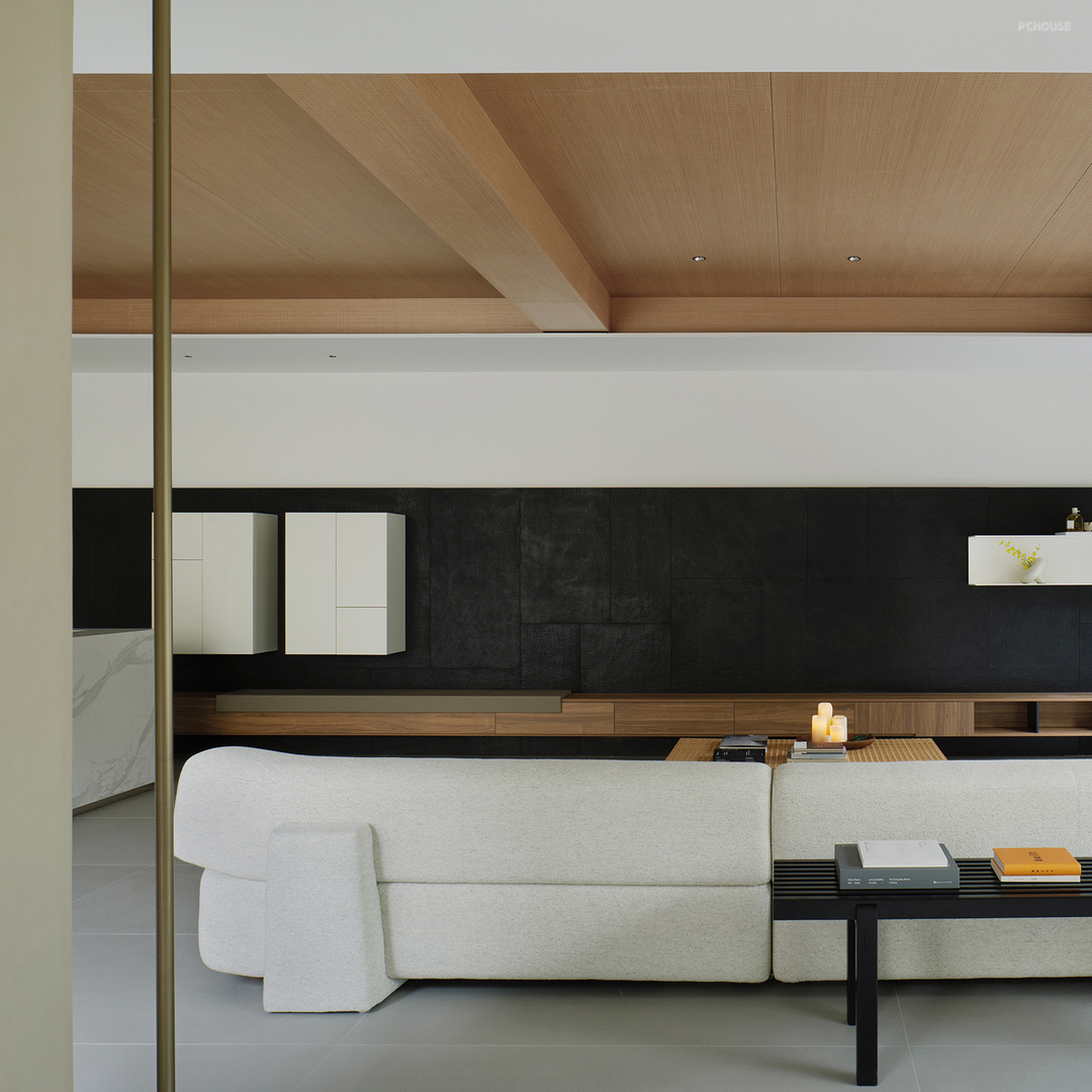 以轻盈的木饰面横梁点缀其间,强化线条纵横视觉引导,更是点睛之笔。