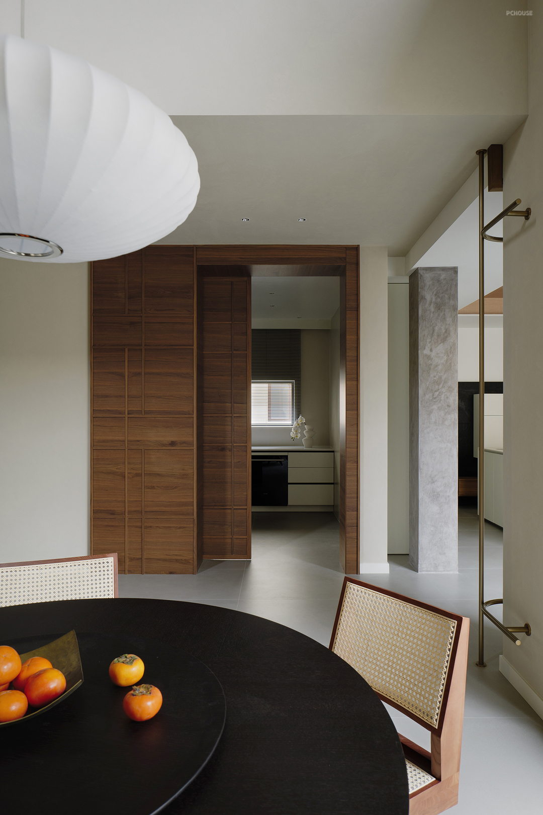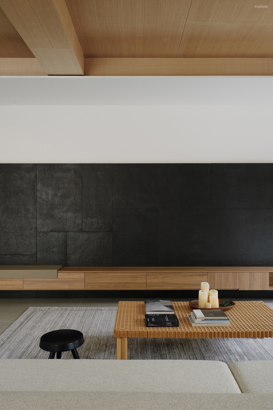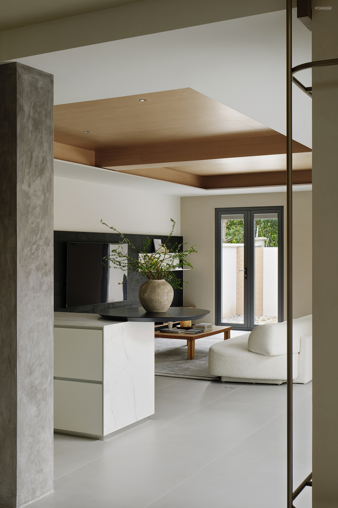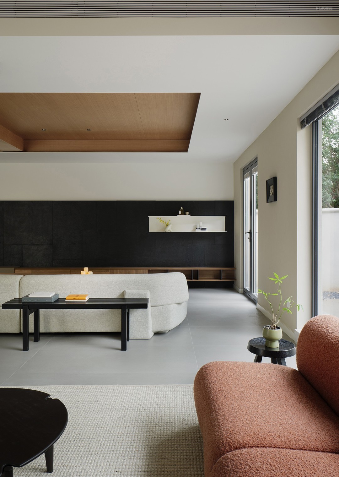 以轻盈的木饰面横梁点缀其间,强化线条纵横视觉引导,更是点睛之笔。