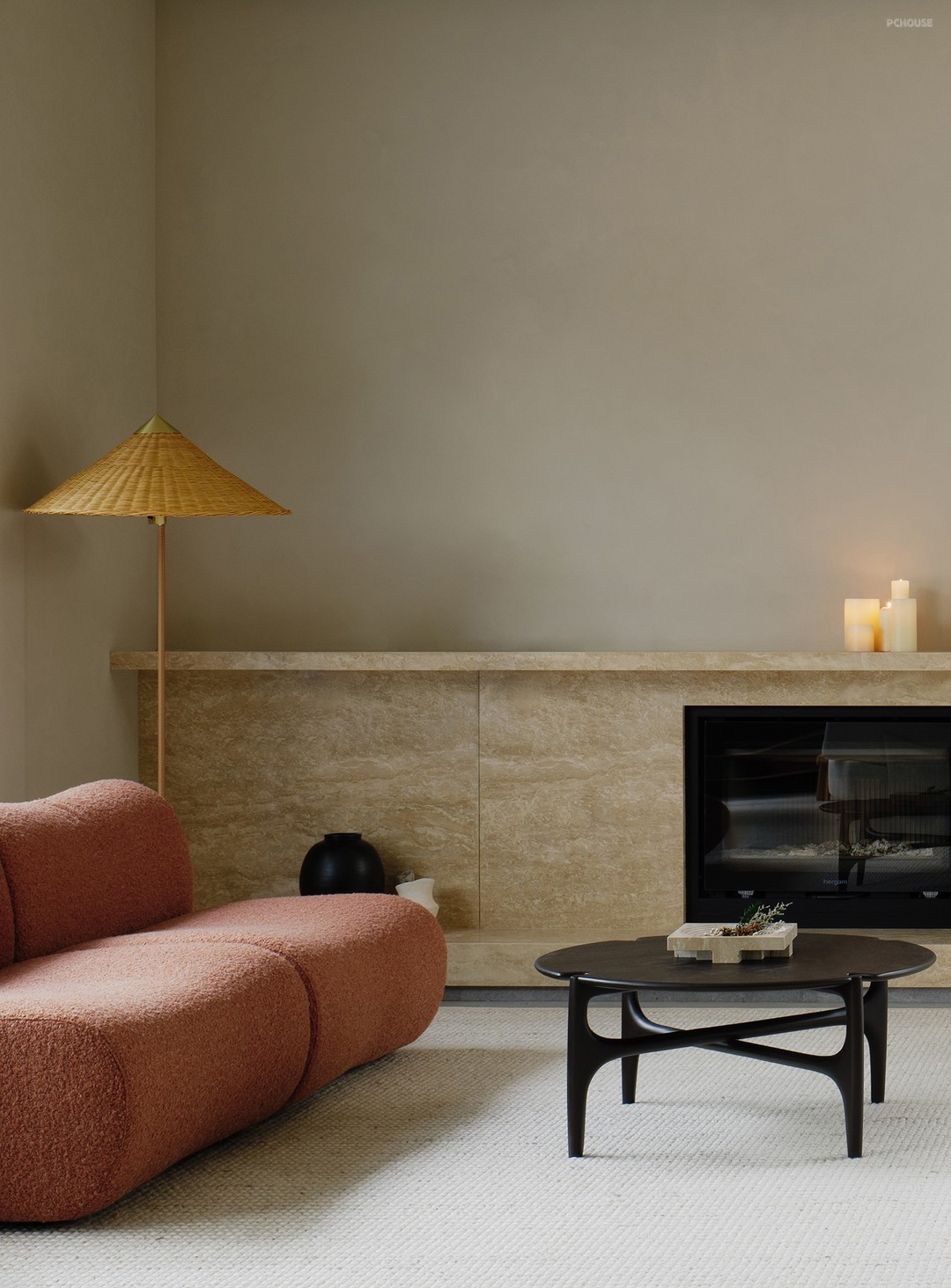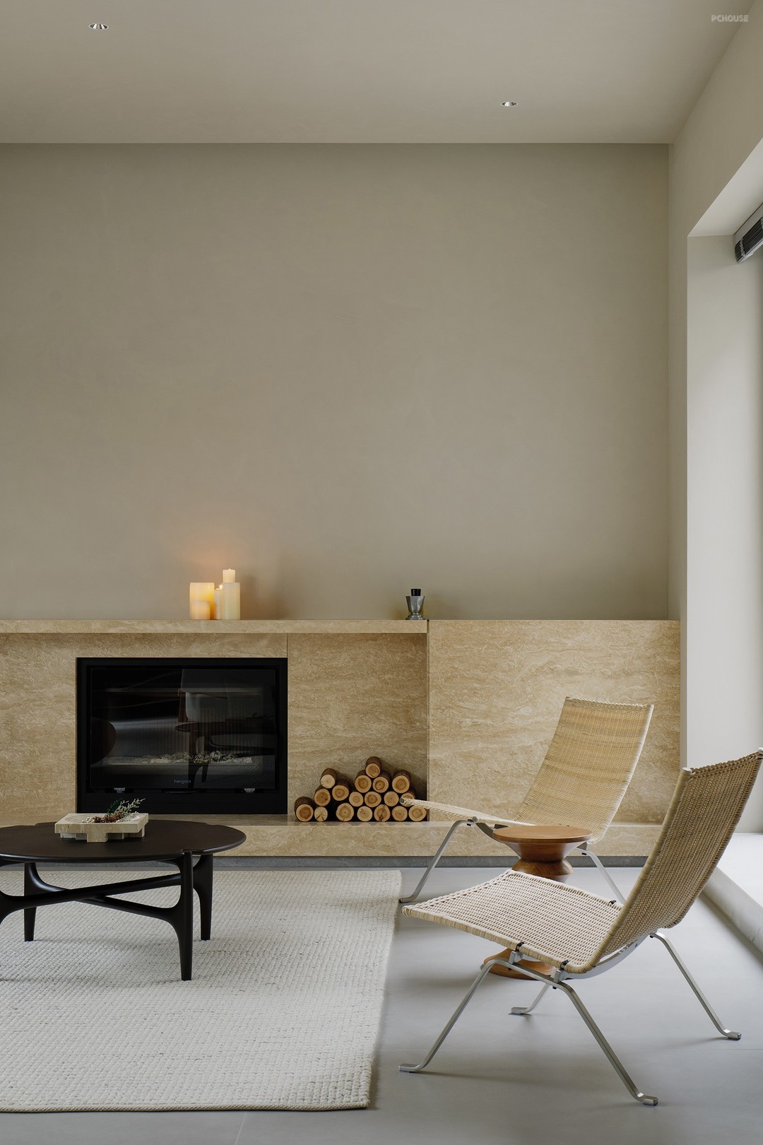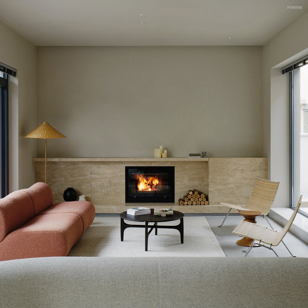 以天然洞石为屏,将壁炉镶嵌其中,粗犷与精致相融,火光映照石纹,自然之趣跃然而生,柴火轻响,似大自然的低语,令人不觉沉醉其中。