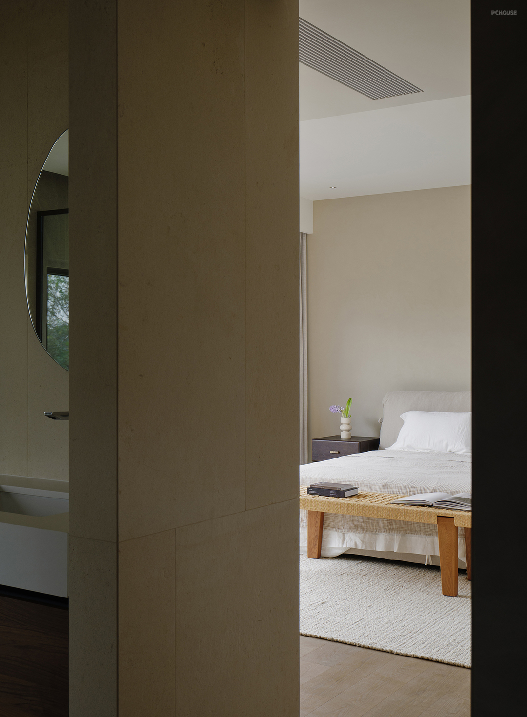 石材的沉稳、木制的温润、皮质的柔和,三种质地在空间中错落有致。层次交错间,平面被赋予了灵动的韵律,成就了一方静谧而富有张力的居室。