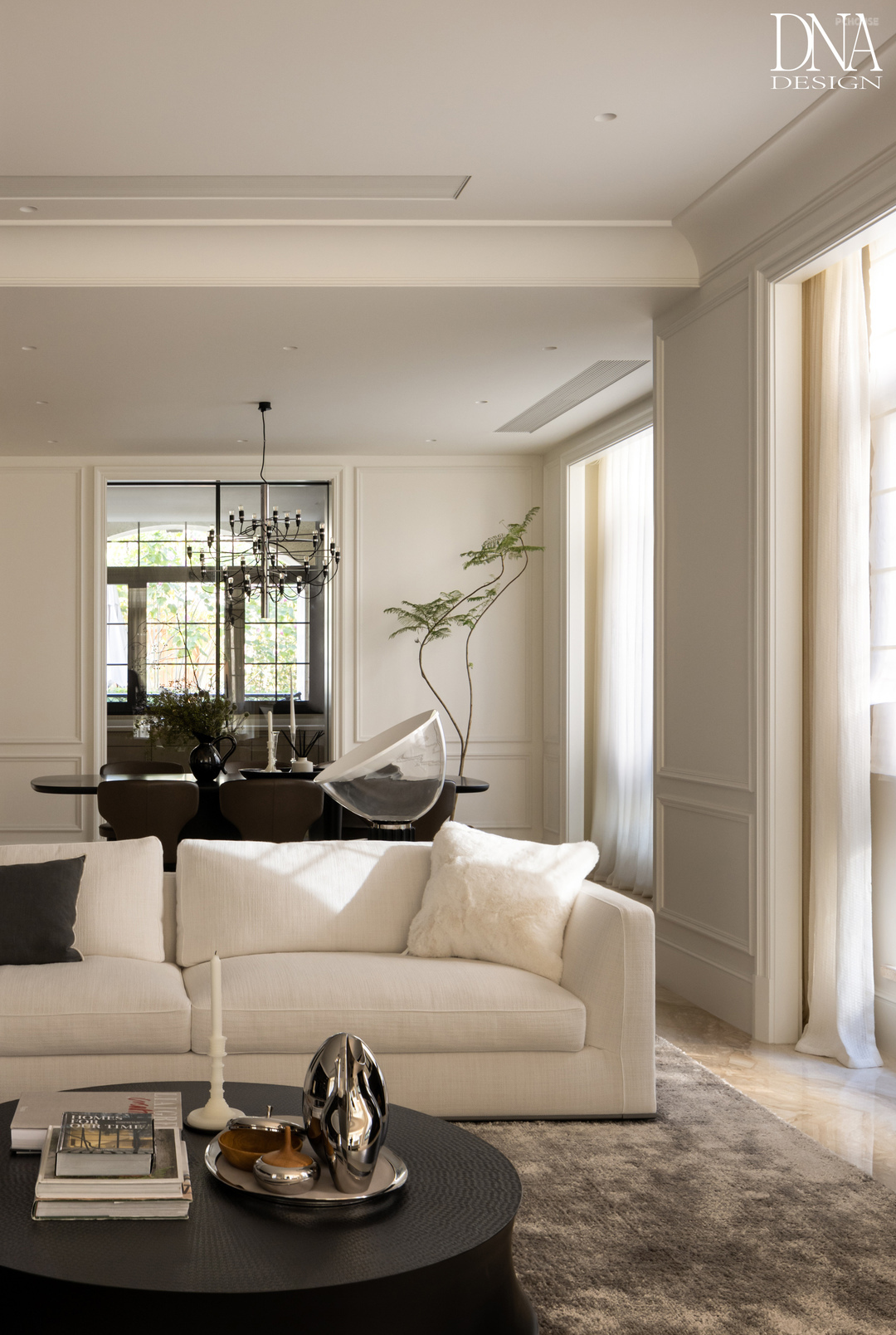 ▼本案为坐落于湘湖景区的别墅群住宅,其经典的法式建筑风格为室内设计奠定了风格基础,我们通过拆改和重新设计将这种优雅延续到室内;我们在室内空间中极其严格地控制色彩以达到高纯净度的室内设计风格,空间大面的留白,更容易创造出空间的呼吸感并突出的视觉焦点,通过经典的石膏线条描绘空间轮廓,简洁又不失精致的细节。