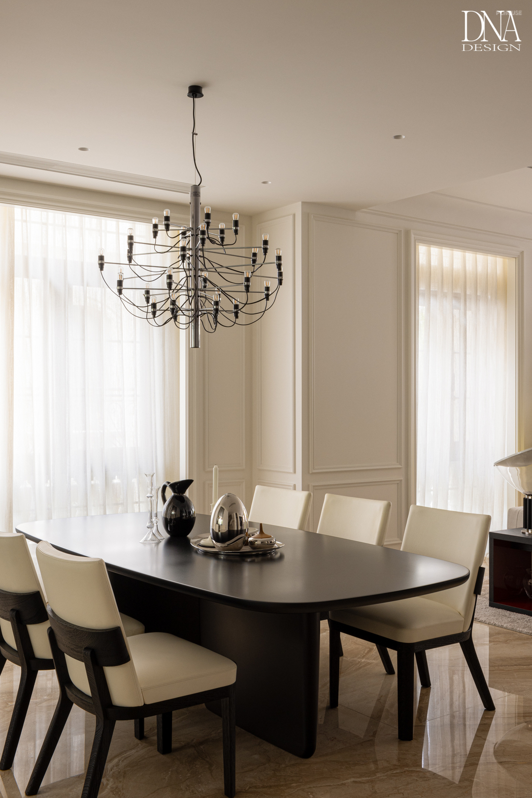 This project is a villa residence located in Xianghu scenic area. Its classic French architecture provides the stylistic basis for the interior design and we carried this elegance into the interior through demolition and redesign. We strictly control the colors in the interior space to achieve a high-purity interior design style. Large areas of white space make it easier to create a sense of breathing in the space and a prominent visual focus. The outline of the space is depicted through classic plaster lines, which is simple yet exquisite in details.