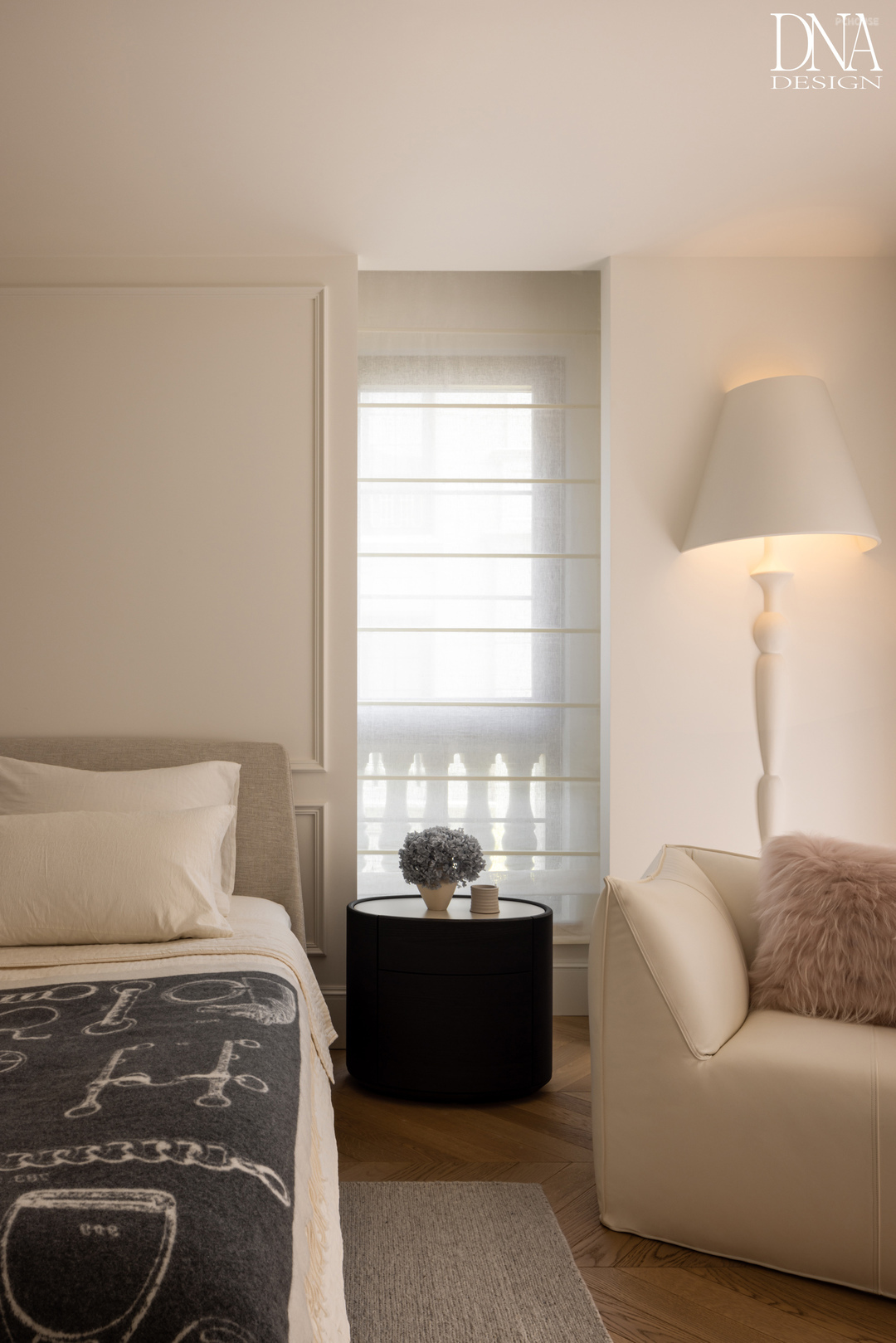 ▼除了干净的色彩,选择形体更简单明快的家具,也是空间中的庄重、优雅体现的重要构成因素。