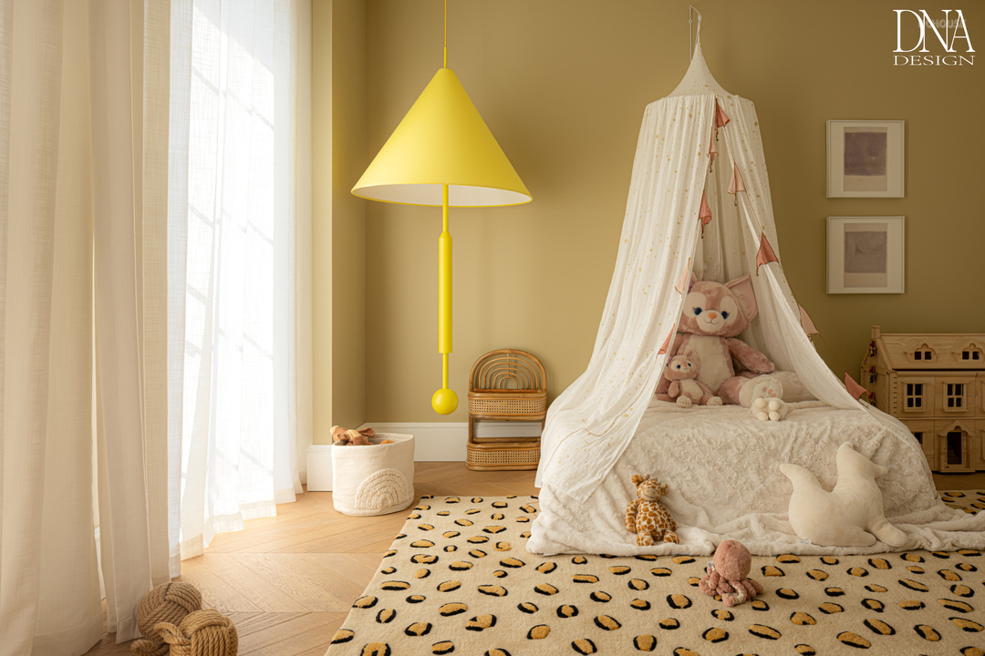 Yellow paint is used in the children’s activity room to distinguish the attributes of the space. The design of the umbrella-shaped chandelier by Maison Dada is full of playfulness and whimsy, and is quite childlike. It subverts traditional aesthetics and established ideas, and injects inspiration and creativity into the space.
