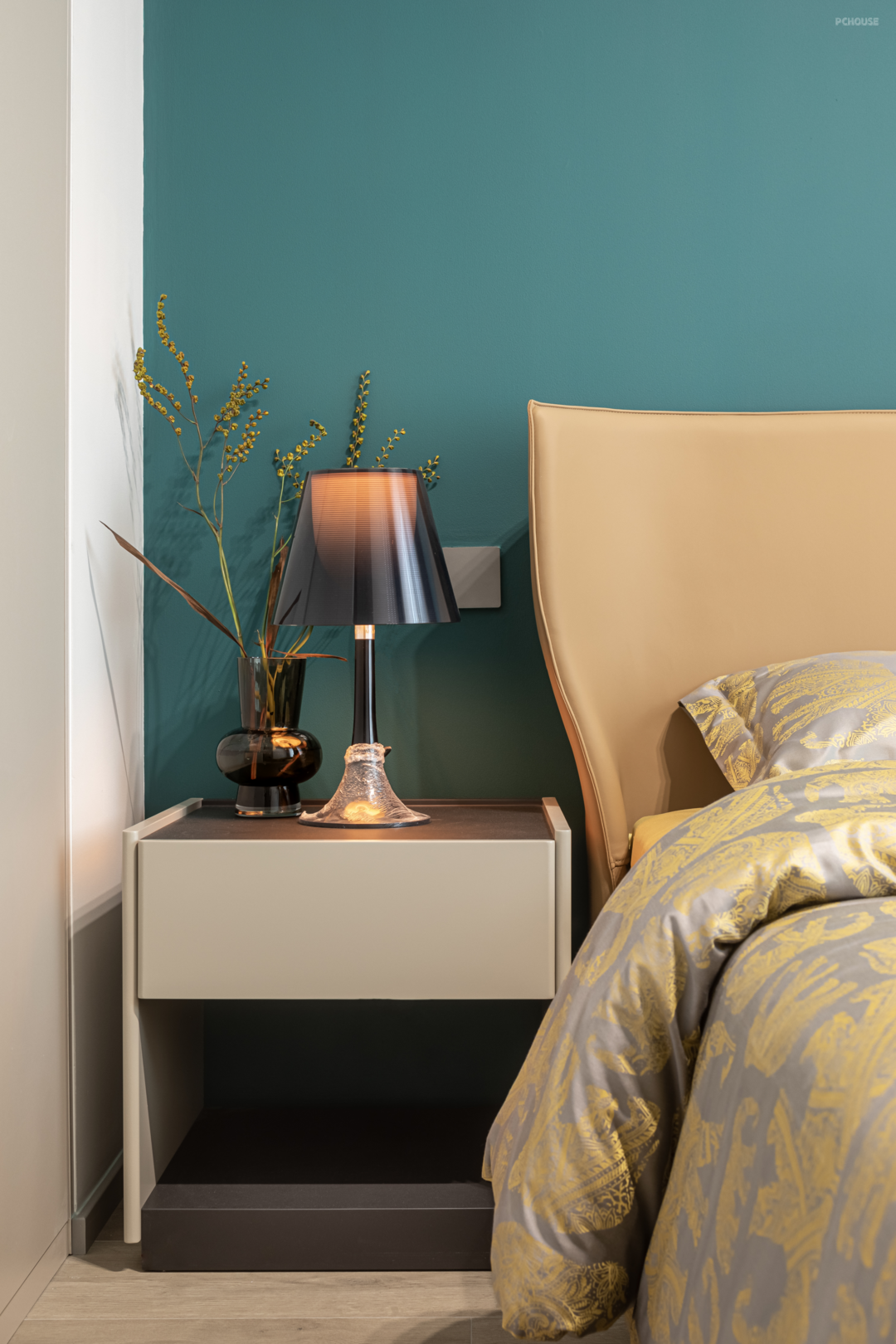 灯光照耀在床头,洒下一片浪漫,为空间带来温柔的基调,晚间时刻点上喜欢的香薰,再静静看一会书籍,为安稳入睡渲染气氛条件。
