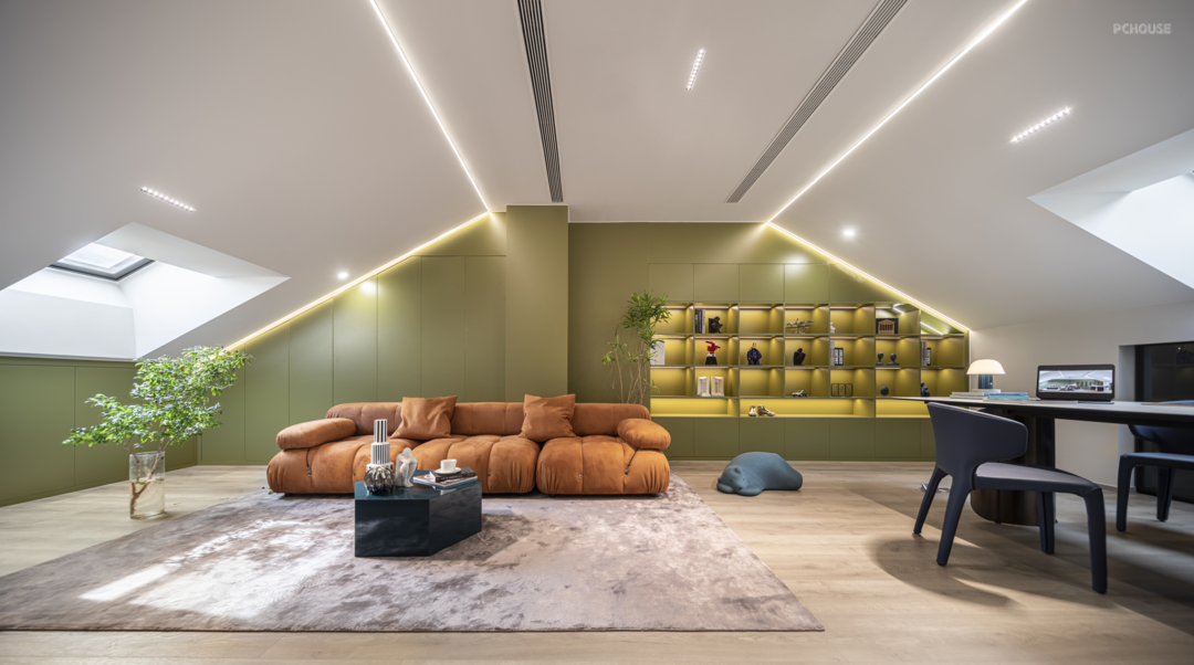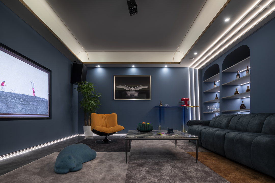 影音室结合光影的点缀,让空间更加放松舒适,音乐、阅读、观影,场景功能得到充分利用,给予生活丰富的体验。