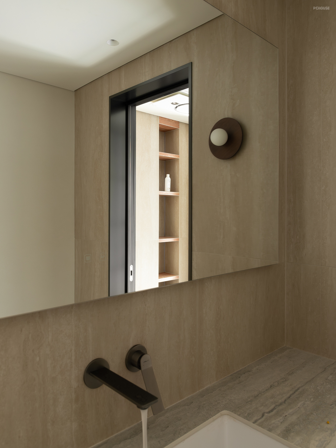原本的厨房+卫生间改造成一个大的四分离卫生间。 独立的马桶间、储藏室、洗漱区、淋浴房。 各个功能可以独立使用,互相不干扰。