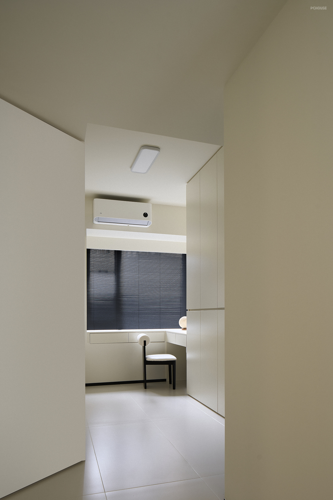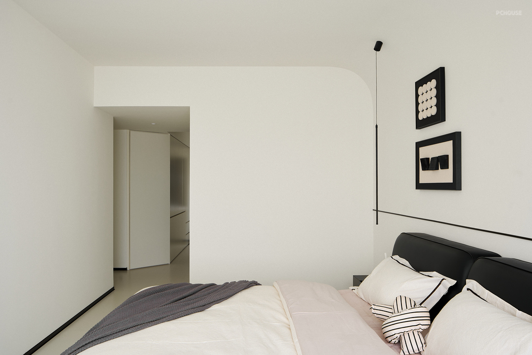 墙面阴角处经过圆弧处理,减轻了墙角的尖锐感,使整个空间的过渡看起来更加柔和自然。