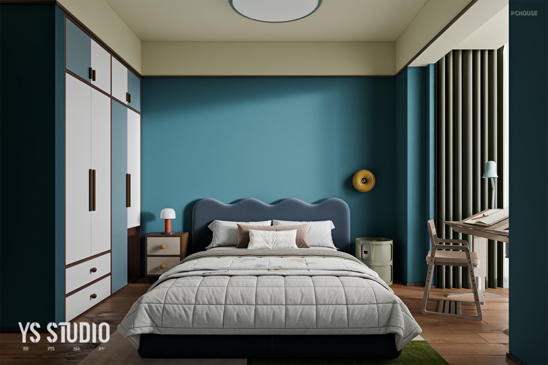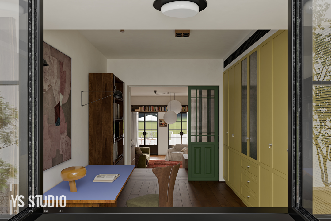 女主人的写作空间,我们降低了色彩的饱和度,穿过柔和的色调,让色彩绽放在自然之间。清爽的色系,不只是一种颜色,也可缓解日常工作的疲劳感。