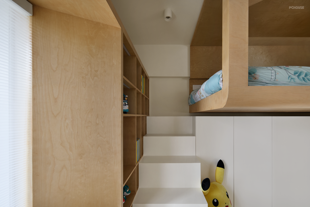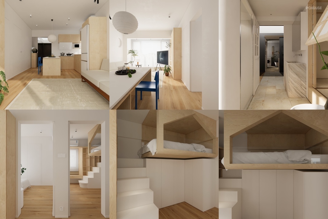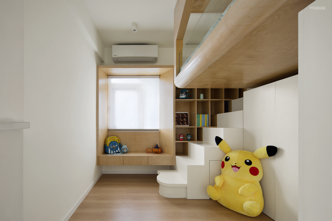 从两房延展出三房,我们打造几处有意思的空间,一个如置身于烟雨江南,小桥流水的多功能房;一个如悬浮树屋造型的儿童房。