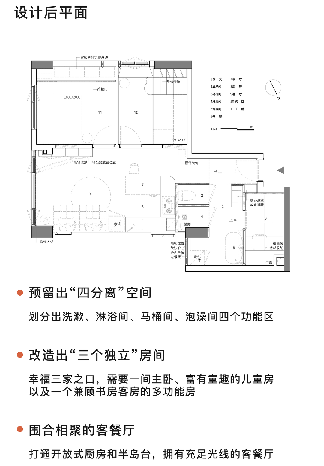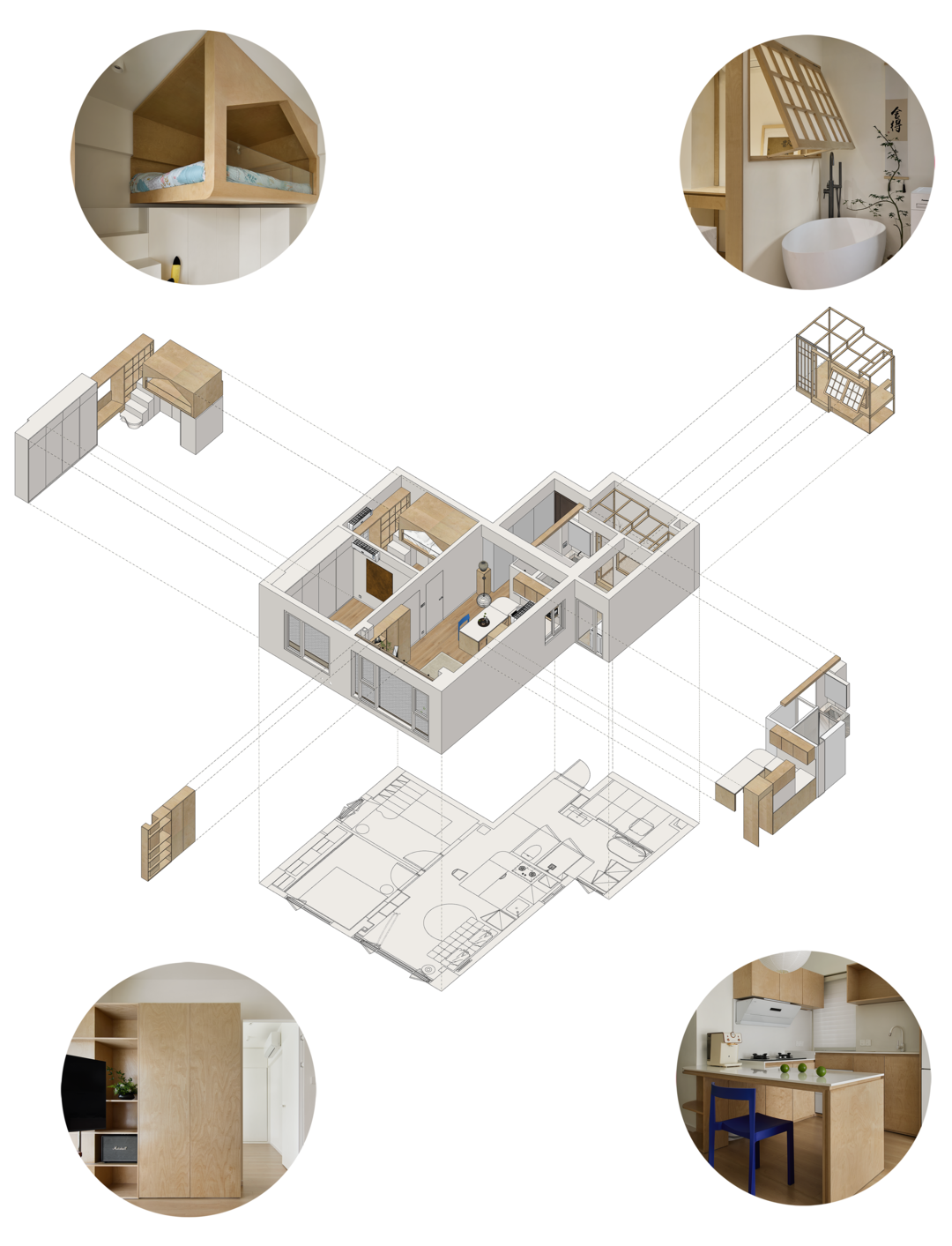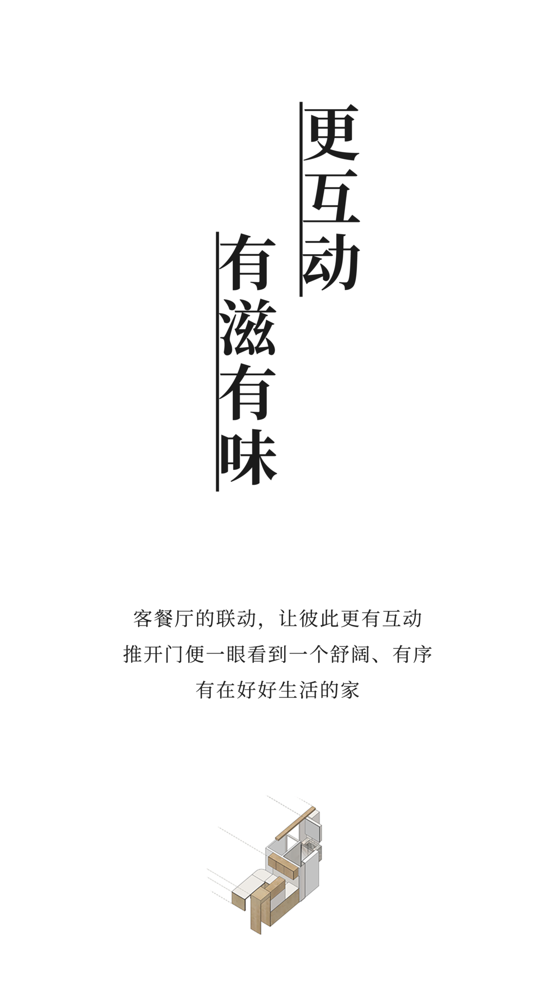 我们通过细化几个生活场景,扩大功能性空间,让生活行为在空间情绪中呈现出丰富布局,各得其所,各具美意。