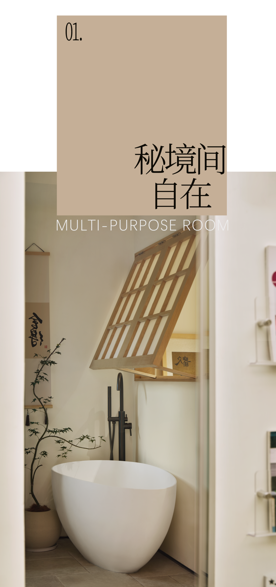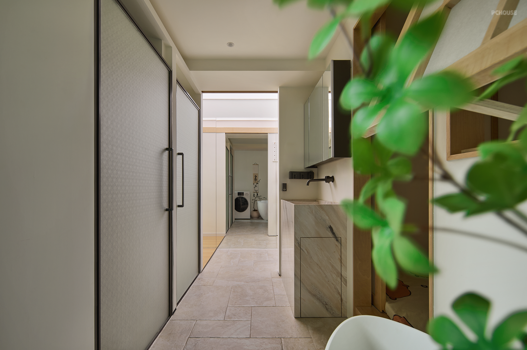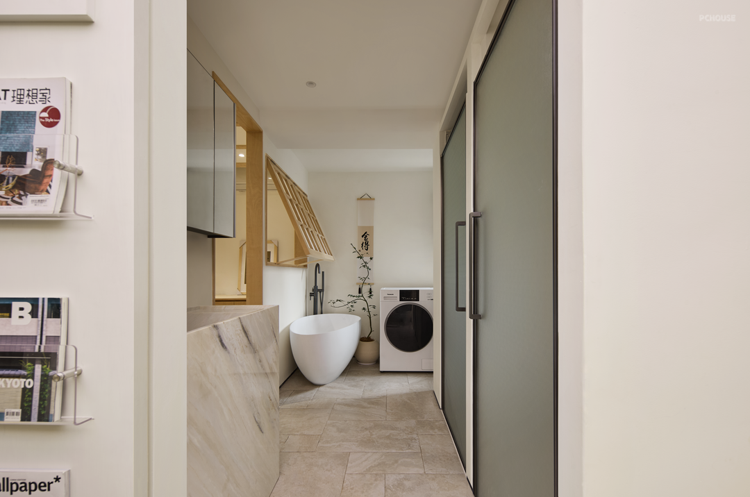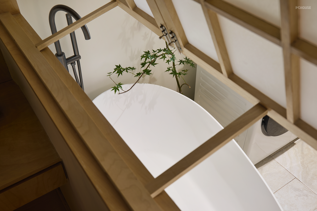 推拉门轻移,进入一隅尘世之外的清幽之境,可被打造成工作区、休憩区,以及独立泡澡间,洗漱间等,契合居住者的雅趣,衍生出无限的想象空间。