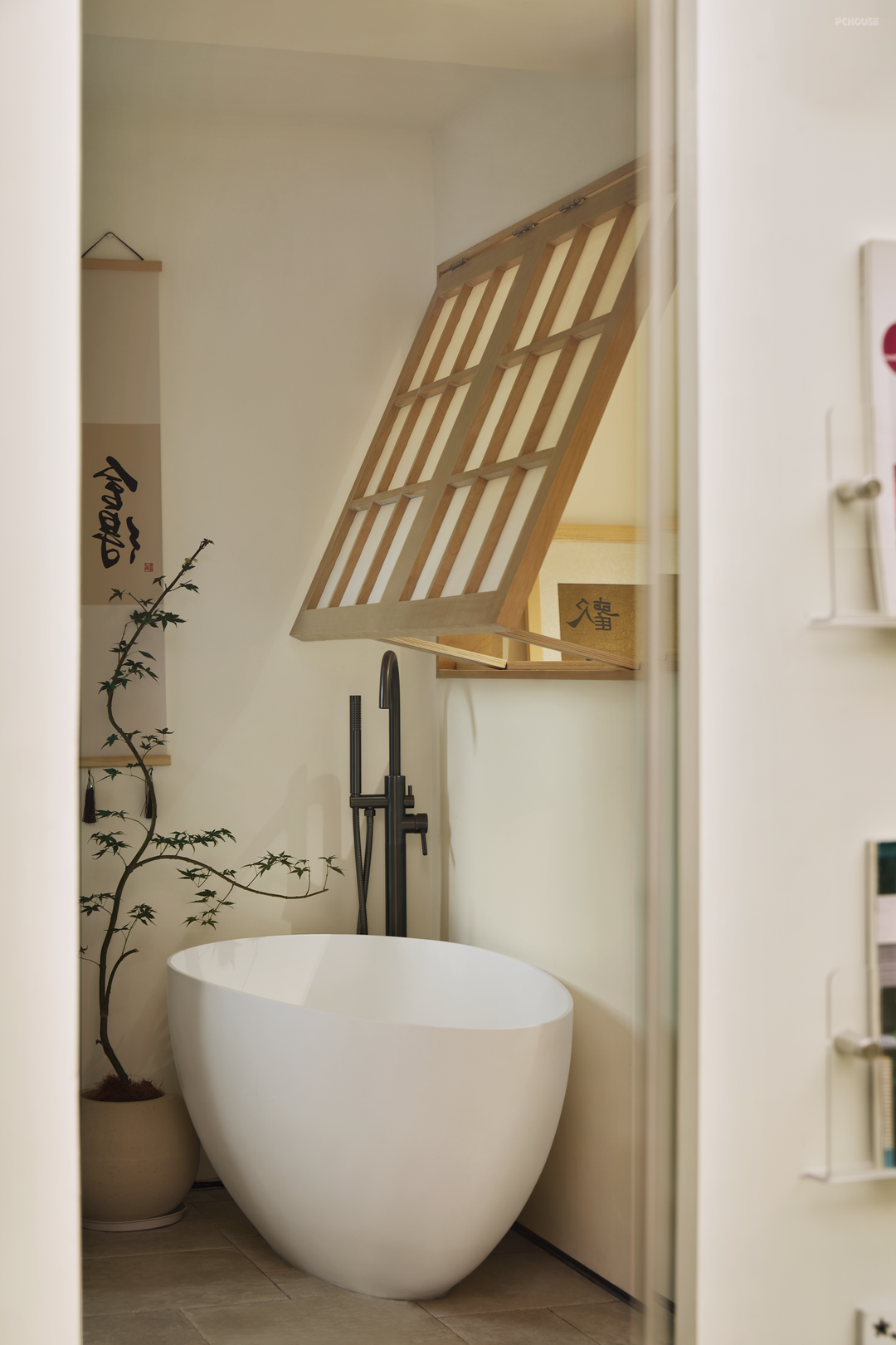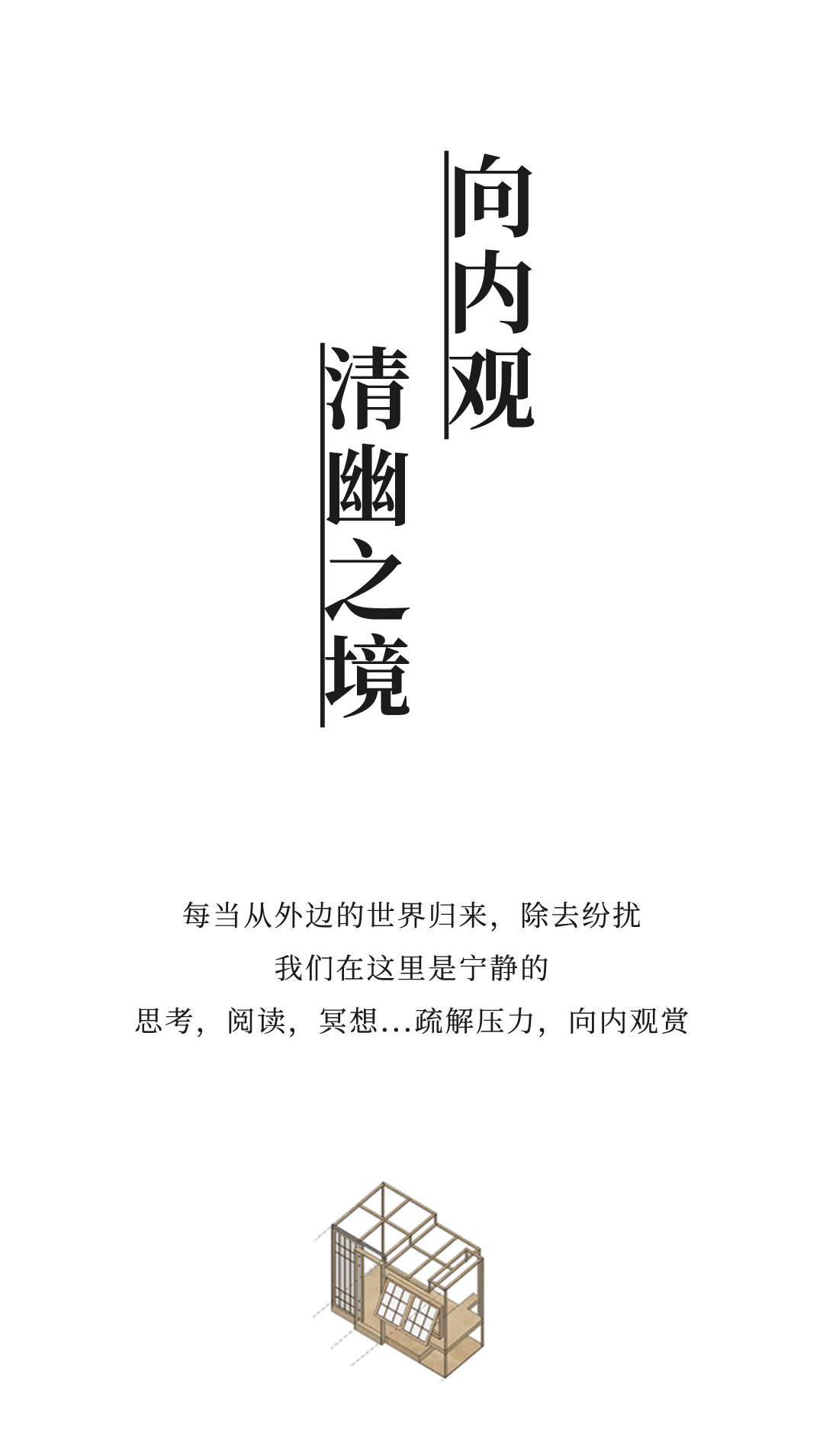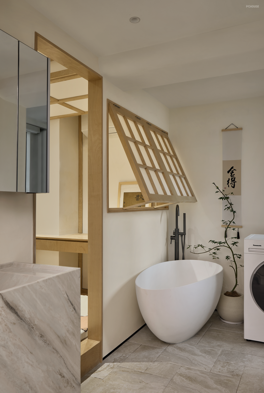 推拉门轻移,进入一隅尘世之外的清幽之境,可被打造成工作区、休憩区,以及独立泡澡间,洗漱间等,契合居住者的雅趣,衍生出无限的想象空间。