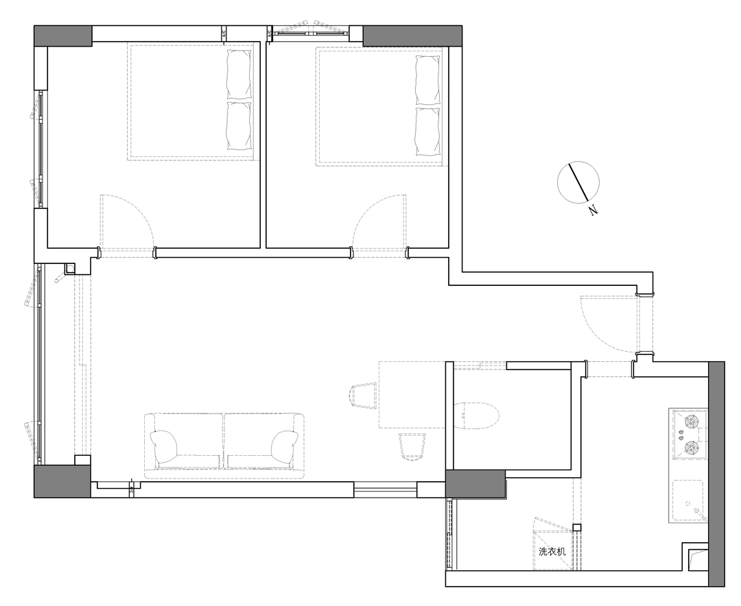因此,摆在我们面前首要考虑到的问题是,厨卫-杂物间-客餐厅之间如何让格局更舒适。