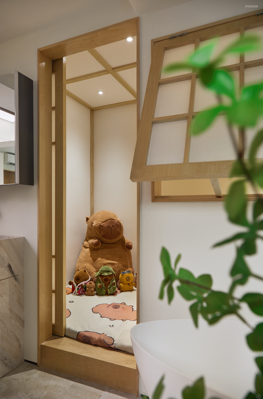 摆放着小朋友最喜爱的“卡皮巴拉一家”,营造一处慵懒而精巧的空间。