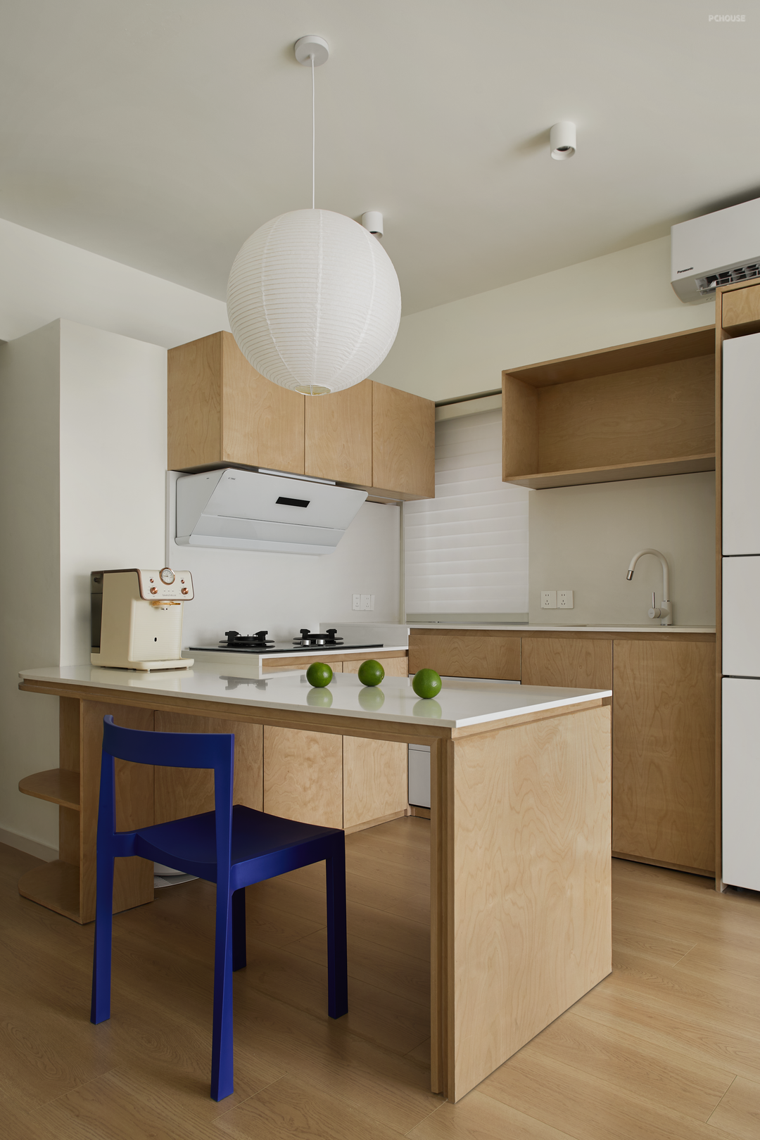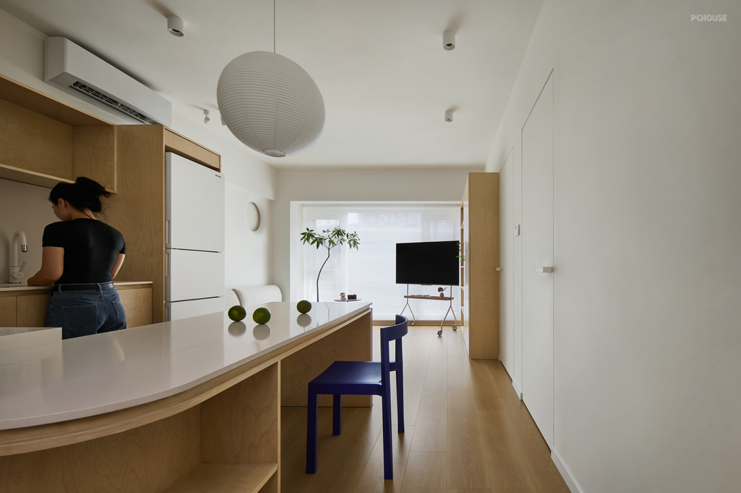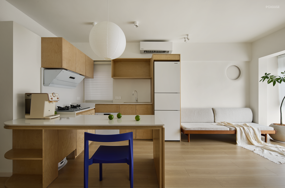 我们希望让“家庭互动”成为家的能量之源,于是取消原有封闭式厨房,客餐厨一体,保证单面采光的公区在改造之后更通透明亮,即可感应朝夕,也有四季三餐。