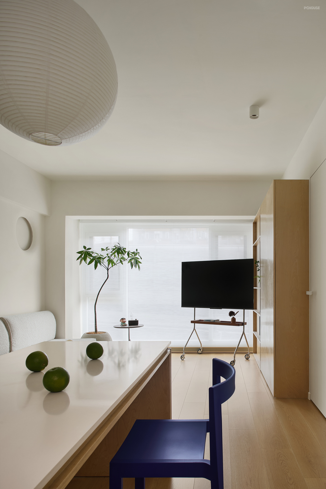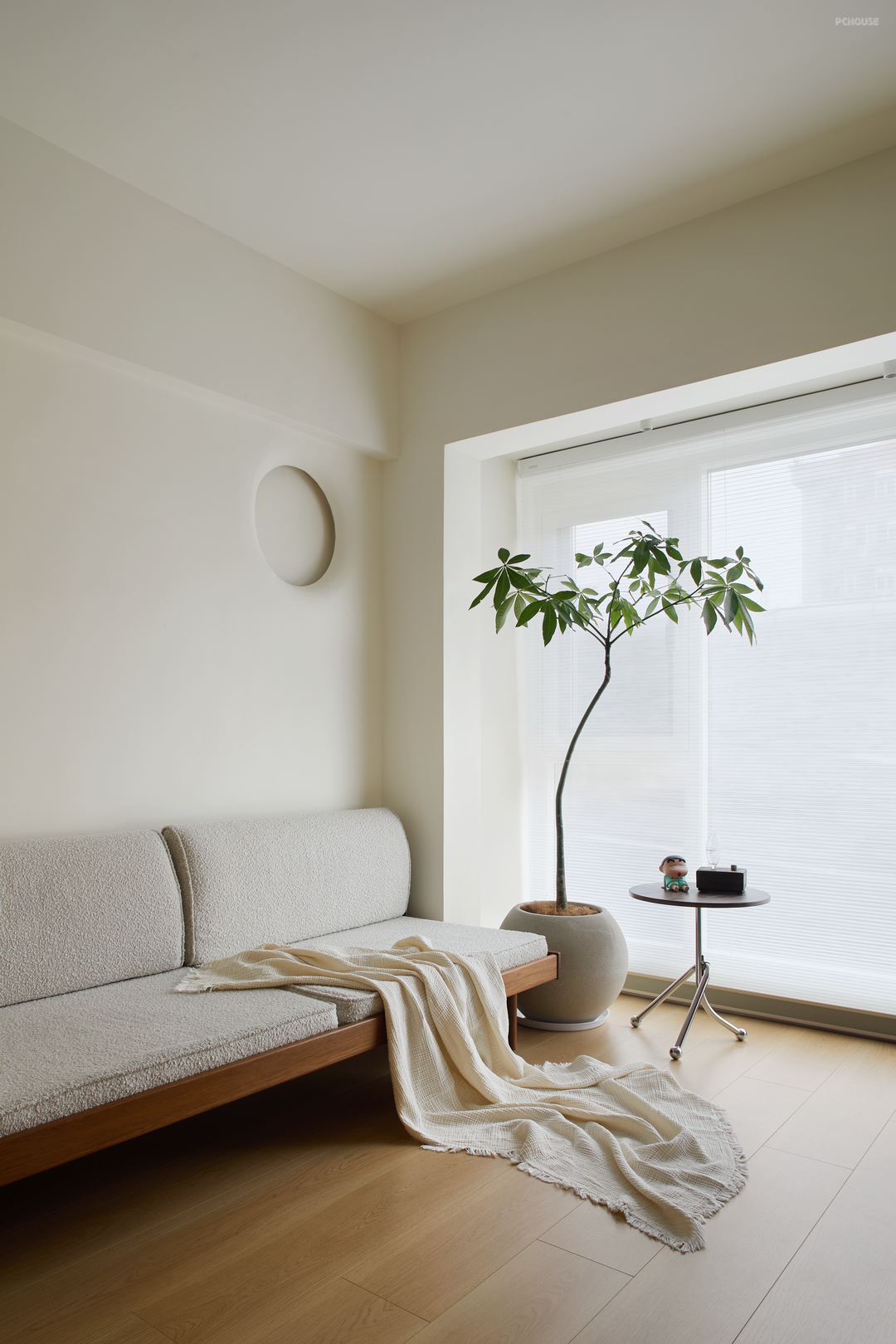 百叶窗为空间铺上一层滤镜,日间恣意享受悠闲时光和日光,夜间遥看霓虹灯光却不被打扰,坐拥四季更迭时的快意时光。
