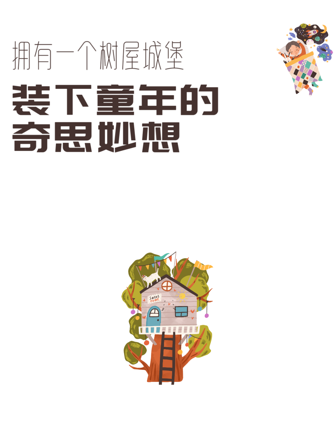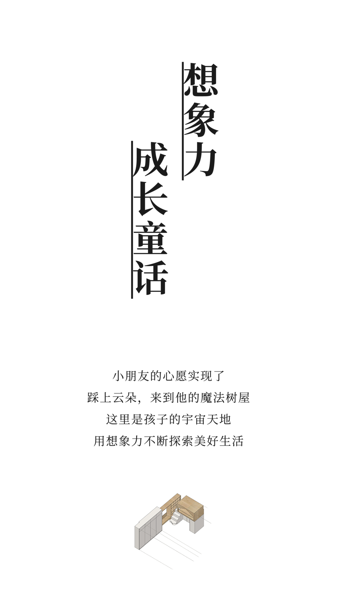 小朋友的想象力和创造力不断被激发,儿童房便是他的灵感源泉。踏上云台阶,一步步抵达属于他自己的悬浮树屋。