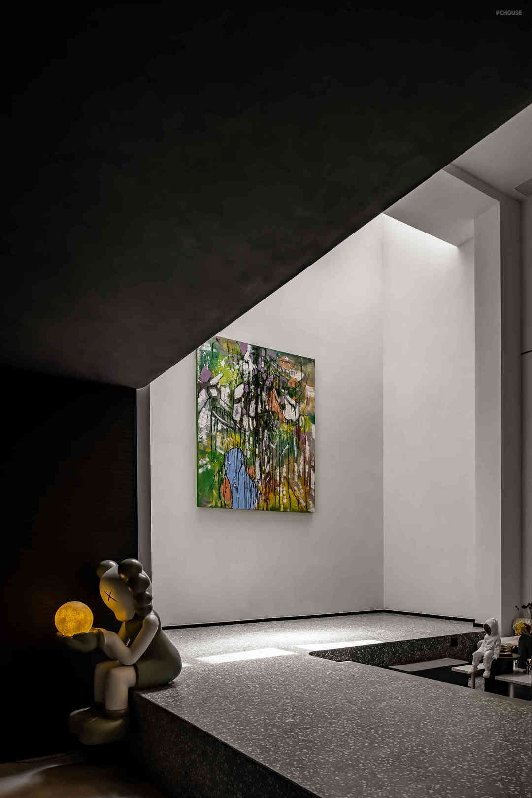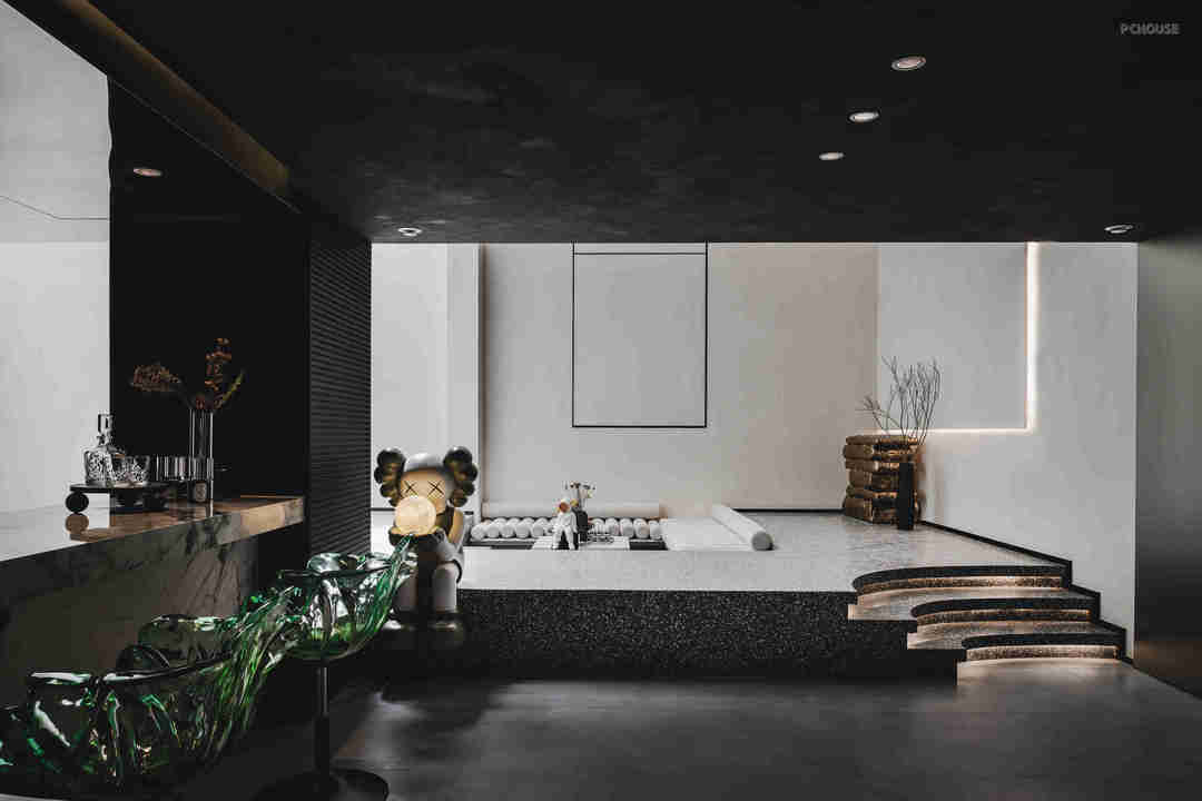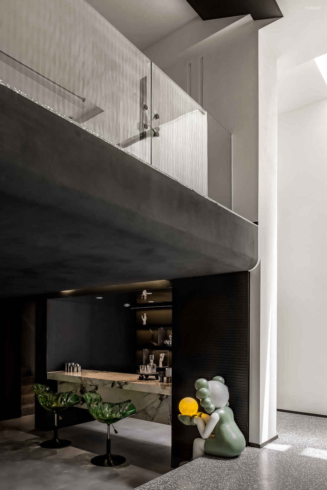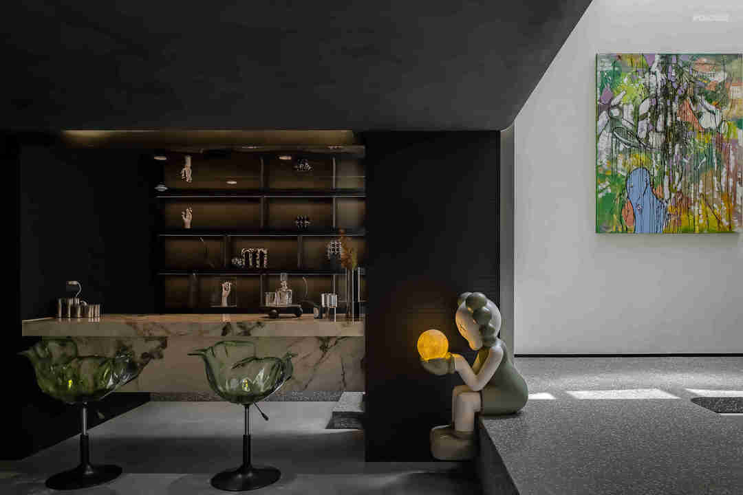现代主义的时尚,以及捎带摩登化的感觉又不夸张,同时还借鉴了一定的斯卡帕艺术,在这样的组合下达到不拼凑且协调。整体颜色灰色为主色,黑色白为辅助色,绿色为点缀色;打破一定的常规,没有采用大面积的白色调,在这些中间融合相辅相成,协调感会孕育而生。