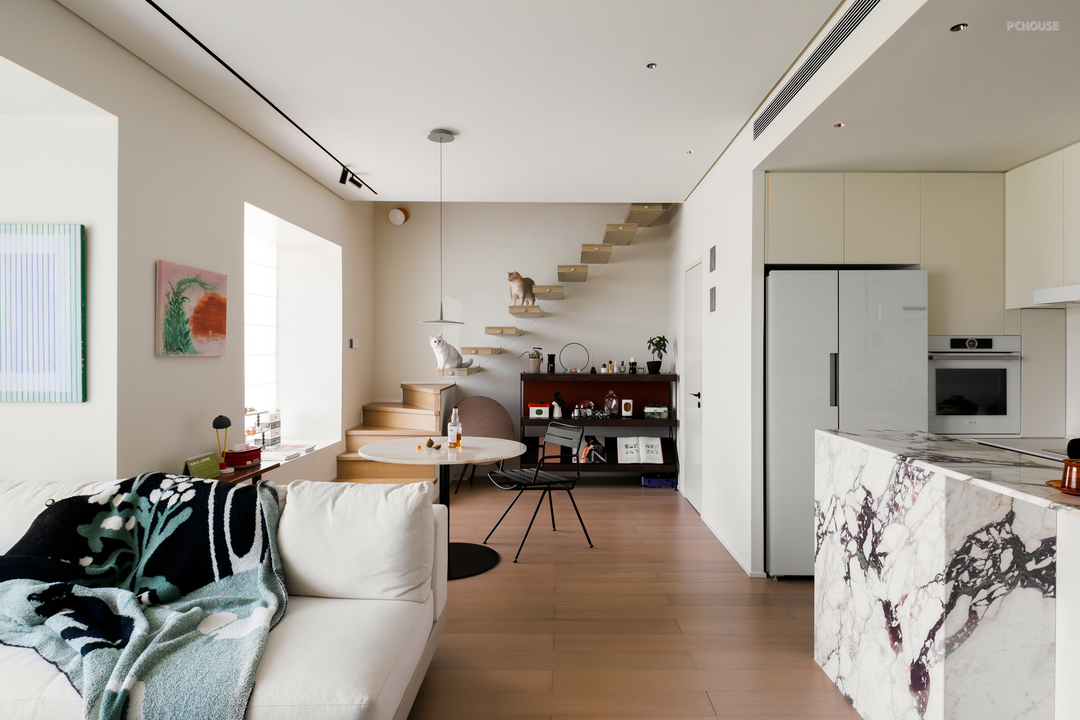 在开始装修之前,摆在面前的首要问题,便是如何让空间格局更加舒适。设计师将影响复式空间居住体验的楼梯位置进行了调整,从而优化了整个空间的格局,让家拥有更加整洁的底色。
