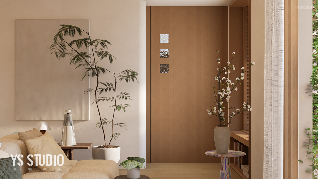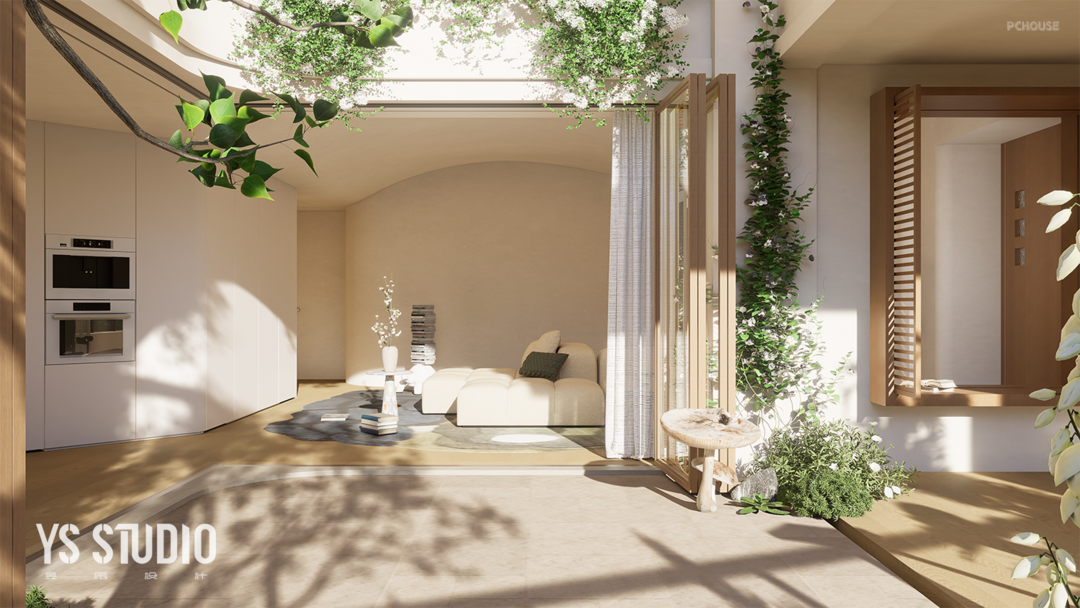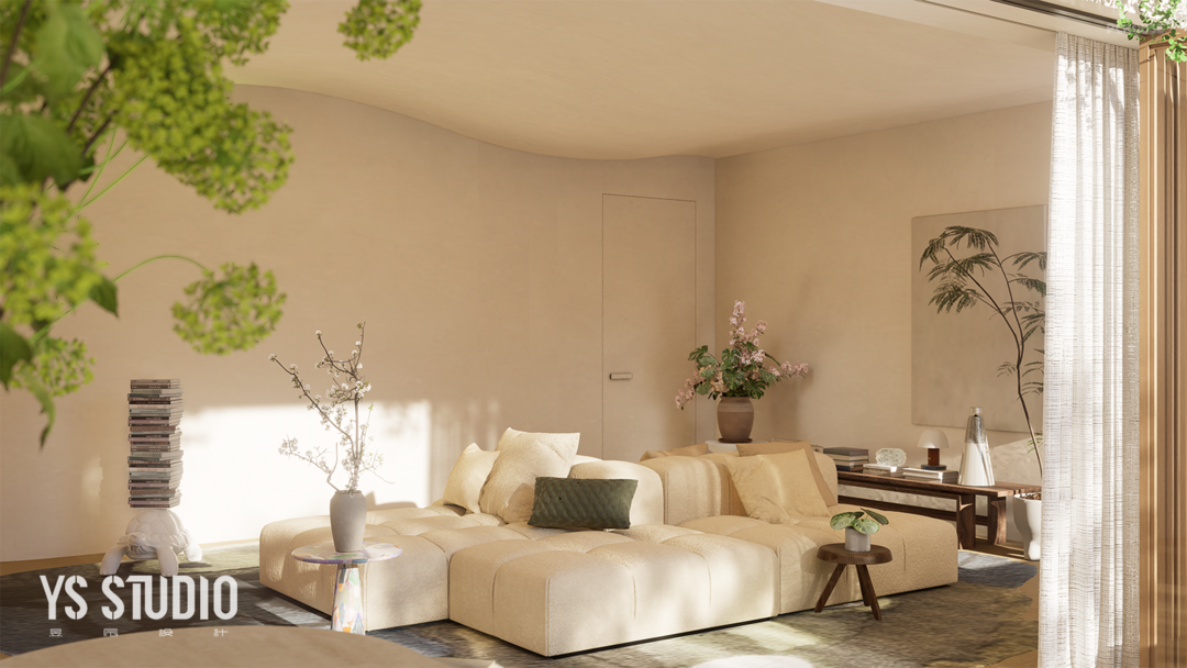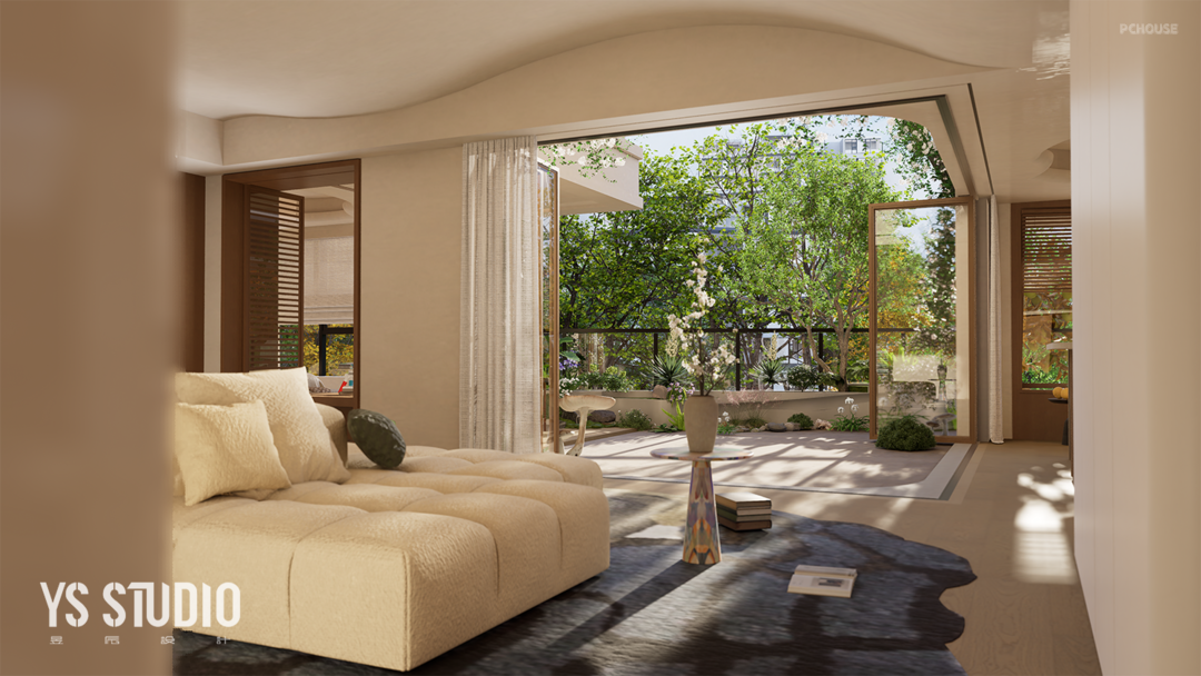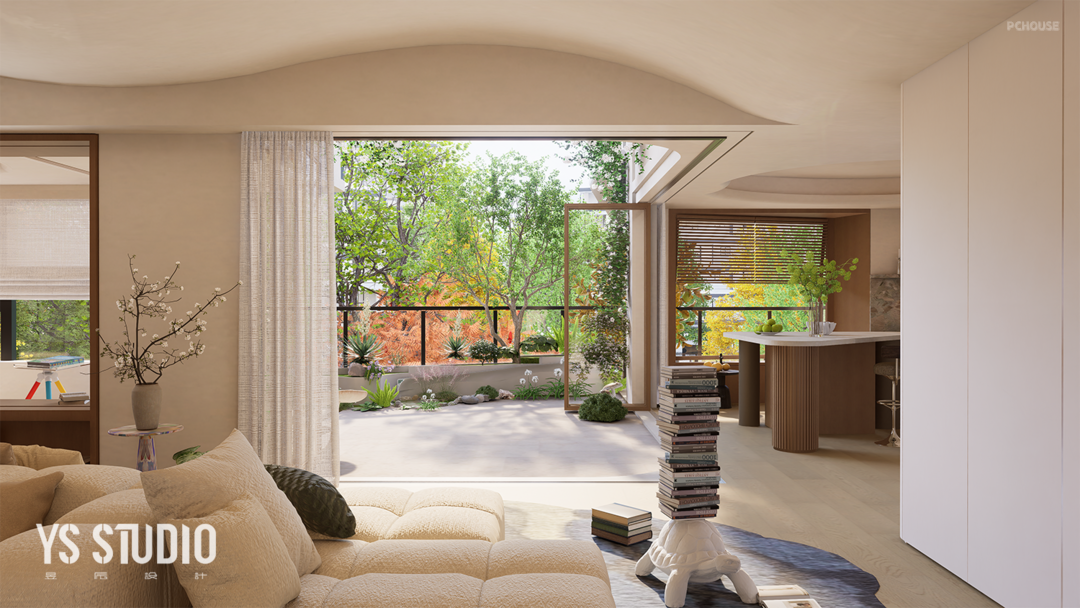 这套房屋所在地,可以称得上是重庆的“网红小区”,得天独厚的超高露台,让设计有了更多发挥的空间,于是诞生了很多具有审美的家居博主。那我们也不能示弱,虽说不是随波逐流,也非刻意去营造,但开放自由的空间,本身就给予了更多可能性。房屋最大的特点便是空间的开放性,四周是通透的落地门窗,向外望去满是自然的风光。我们运用了的借景等设计手法,模糊了室内外的界限,将视线从有限的空间延伸到无限的大自然之中,增加了人与自然的连结,同时将心绪转向求,感知内在的力量。