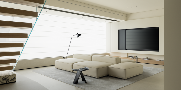 通过梦幻般的楼梯,来到二楼,这里是为这个家庭打造的独属他们的休闲娱乐的区域,目前的公区打造了男主人书房、以及一家人阅读、观影、游戏的家庭厅,几年后,仍可以根据实际需要随时改变功能属性。