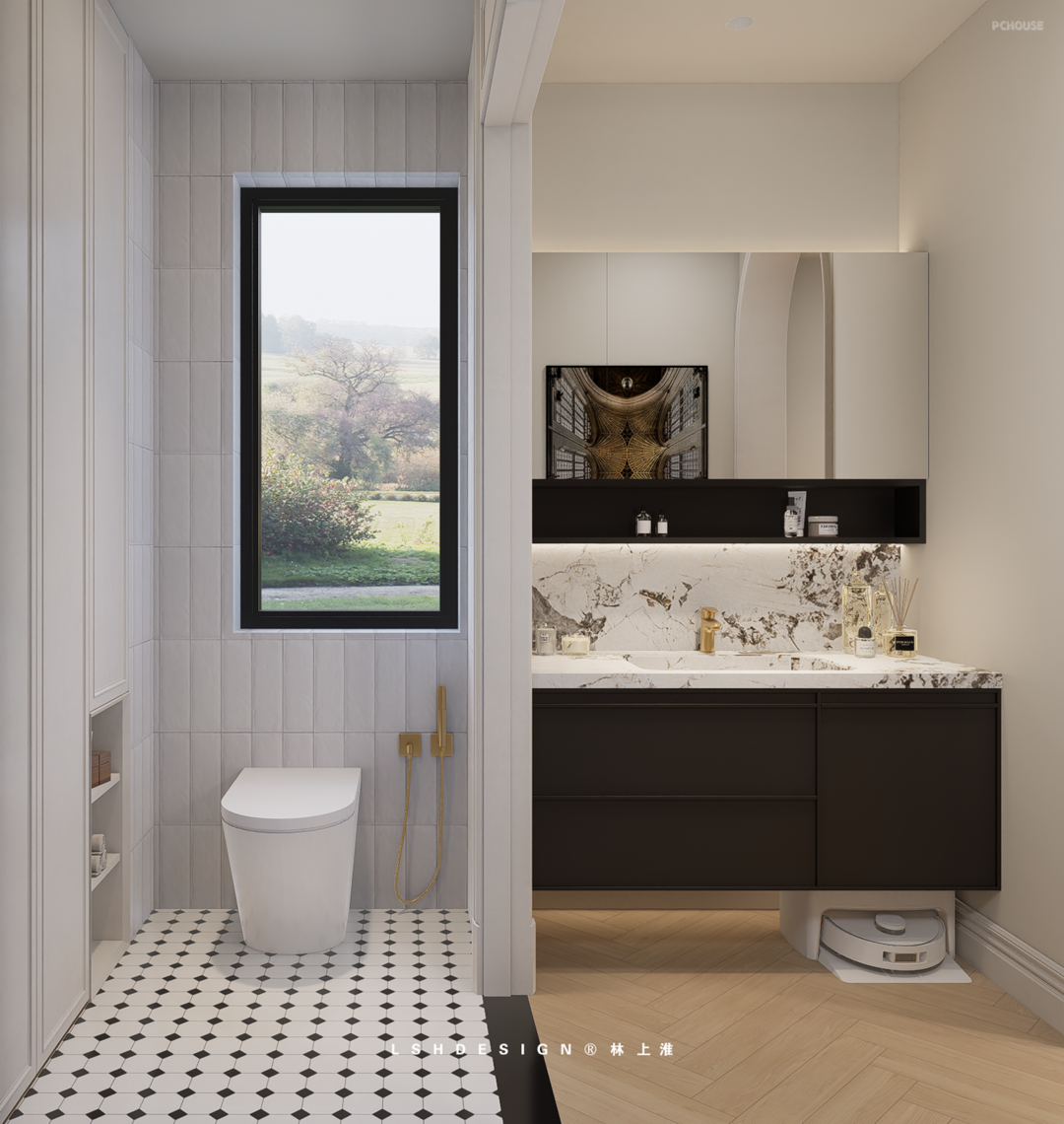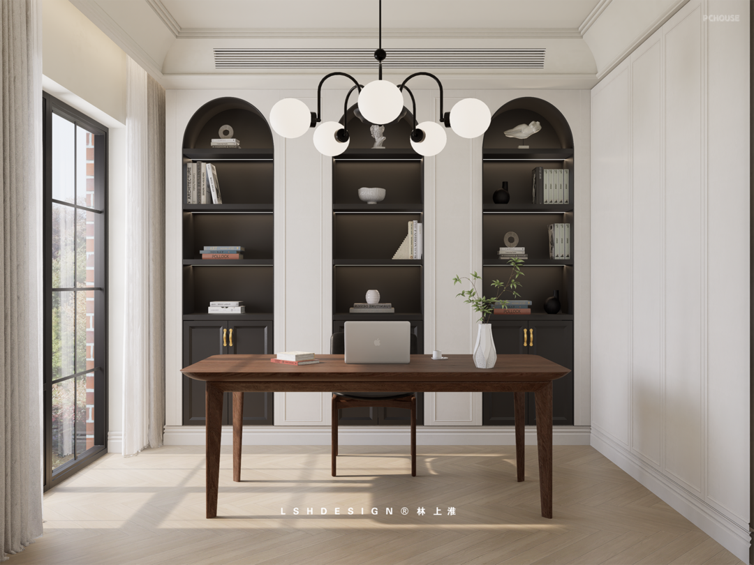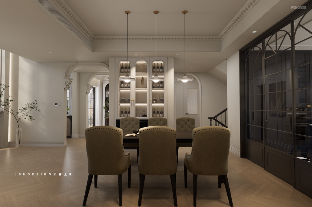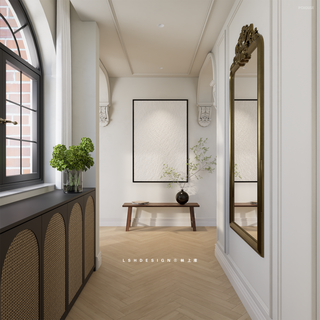 前言: 不被风格定义,“松驰端庄”是本案业主对家的定义。设计师着重于对传统元素的现代化诠释,使得空间保有经典的美式线条的庄重,又有法式花线的浪漫优雅,也不失现代的时尚轻松。