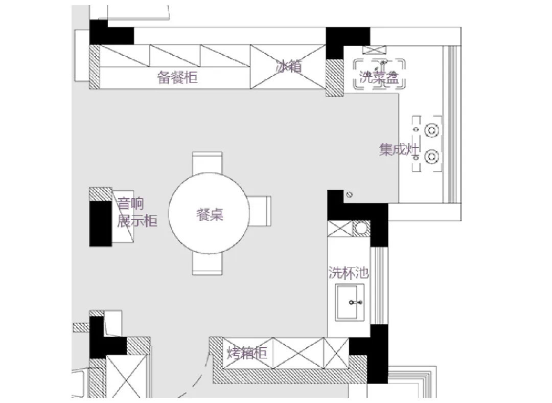 ✅西餐配备了备餐柜,超大冰箱,烤箱,还有单洗菜盆,洗杯器,可以去衔接中厨操作空间的问题,当然这样的双厨设计完全能够满足梦琪的社交属性,朋友比较多需要聚餐的需求。