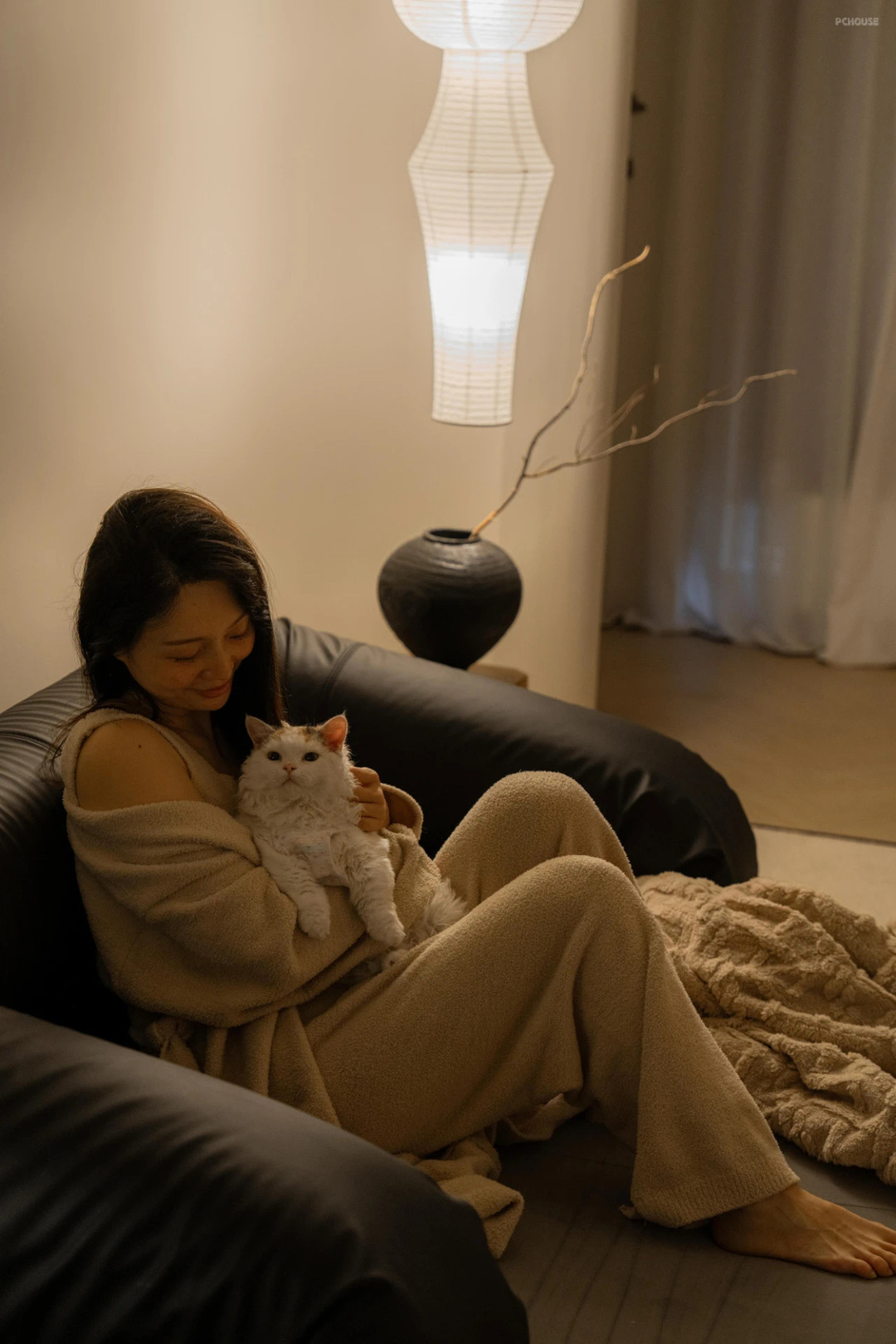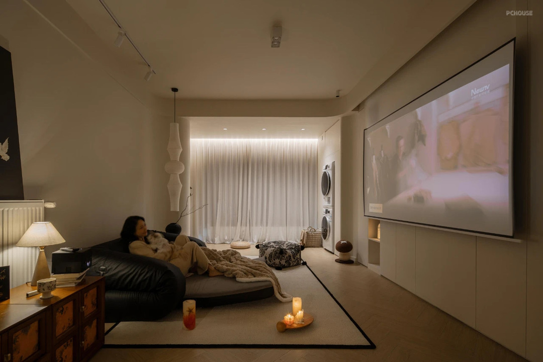 沙发打开,关闭所有灯就是影院模式,一个人躺在沙发上撸着猫儿~